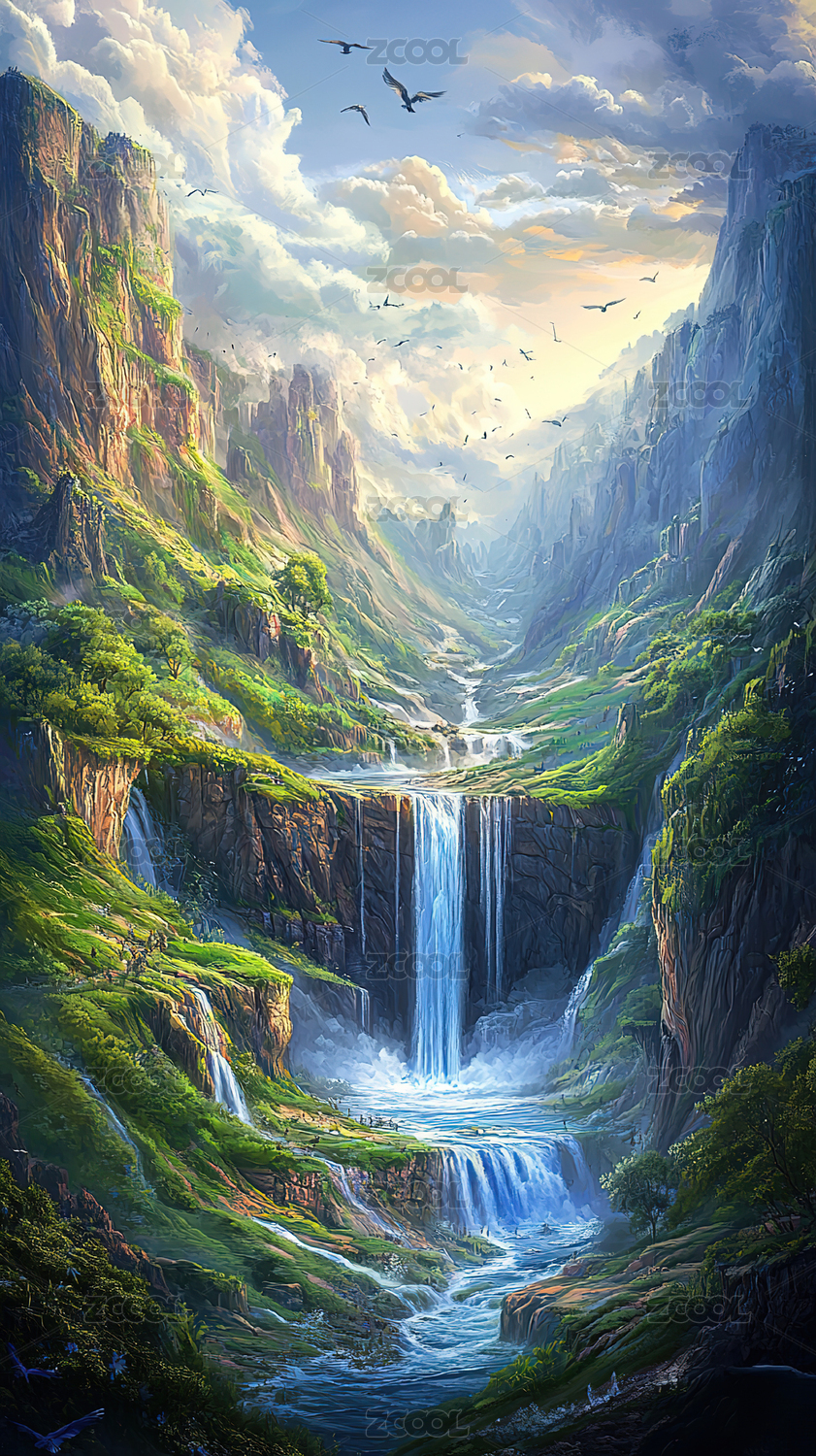 3D,插画,AIGC,森林,梦幻,数字艺术,视觉,AI,河流,立体