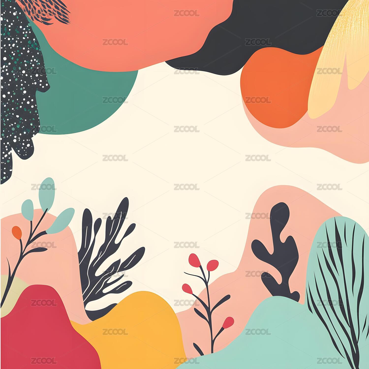 多彩形状和植物的抽象艺术背景