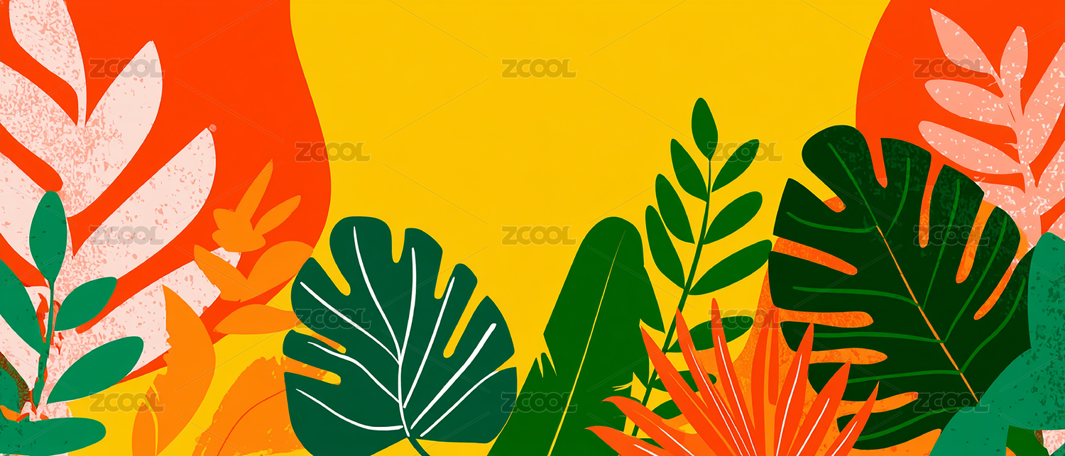 色彩缤纷的热带抽象植物艺术
