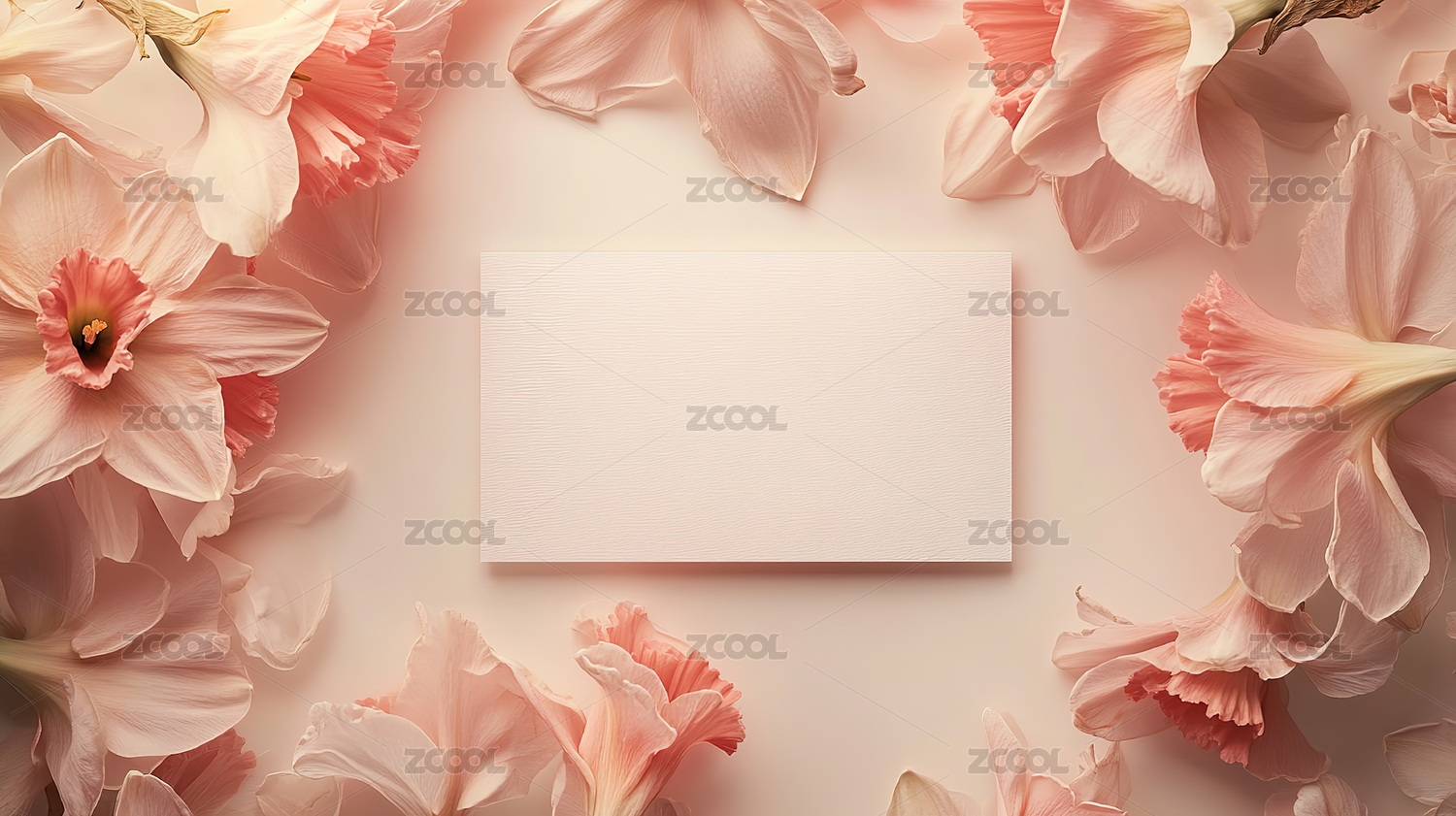 粉色花朵环绕的空白卡片