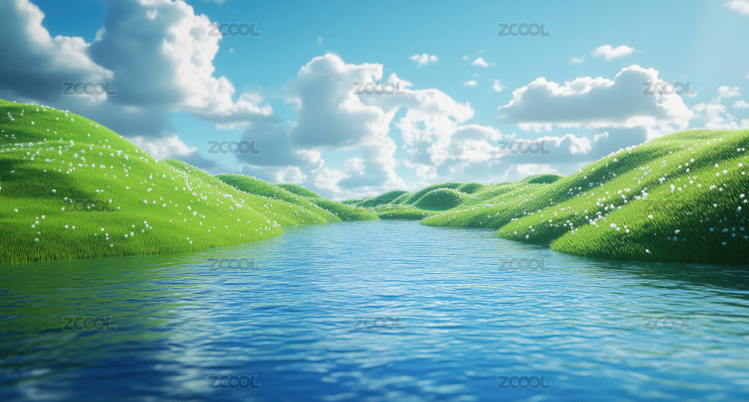 宁静,唯美,绿色,清新,治愈,溪流,户外,流水,绿植,草地