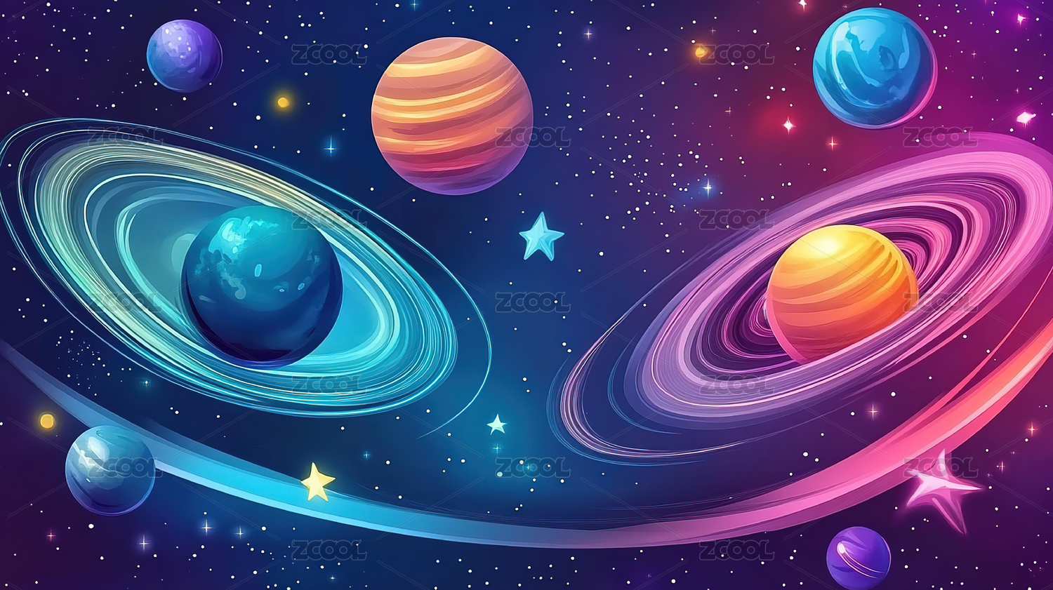 粉色, 橙色, 梦幻, 蓝色, 紫色, 彩虹, 奇幻, 星星, 绚丽,宇宙