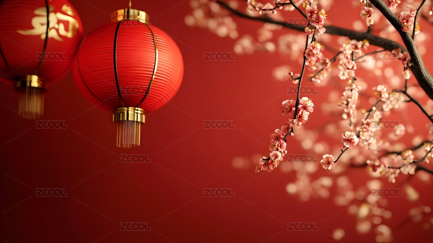 桃花,新年,灯笼,节日,庆祝,特写,背景,设计,传统,春节