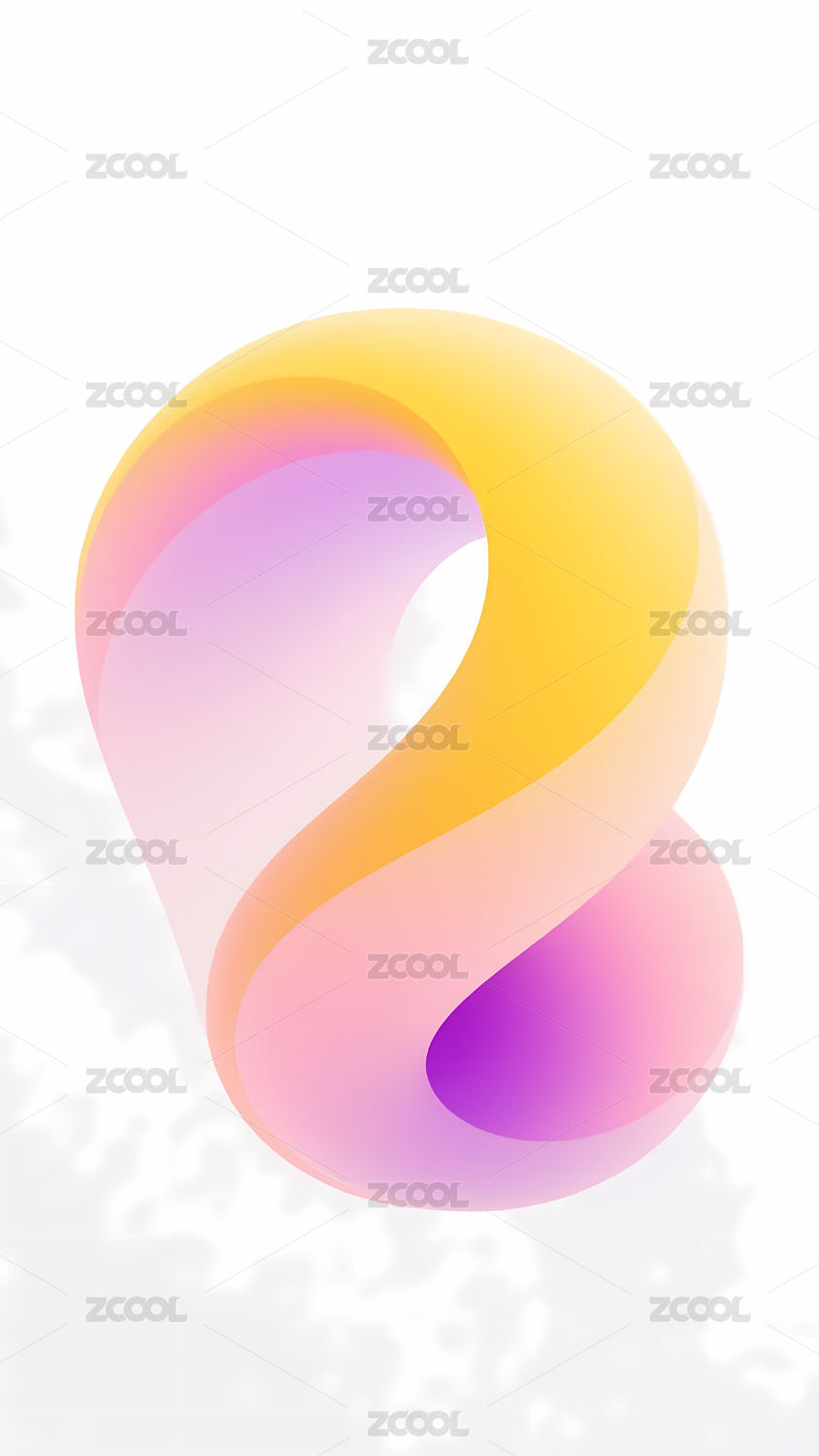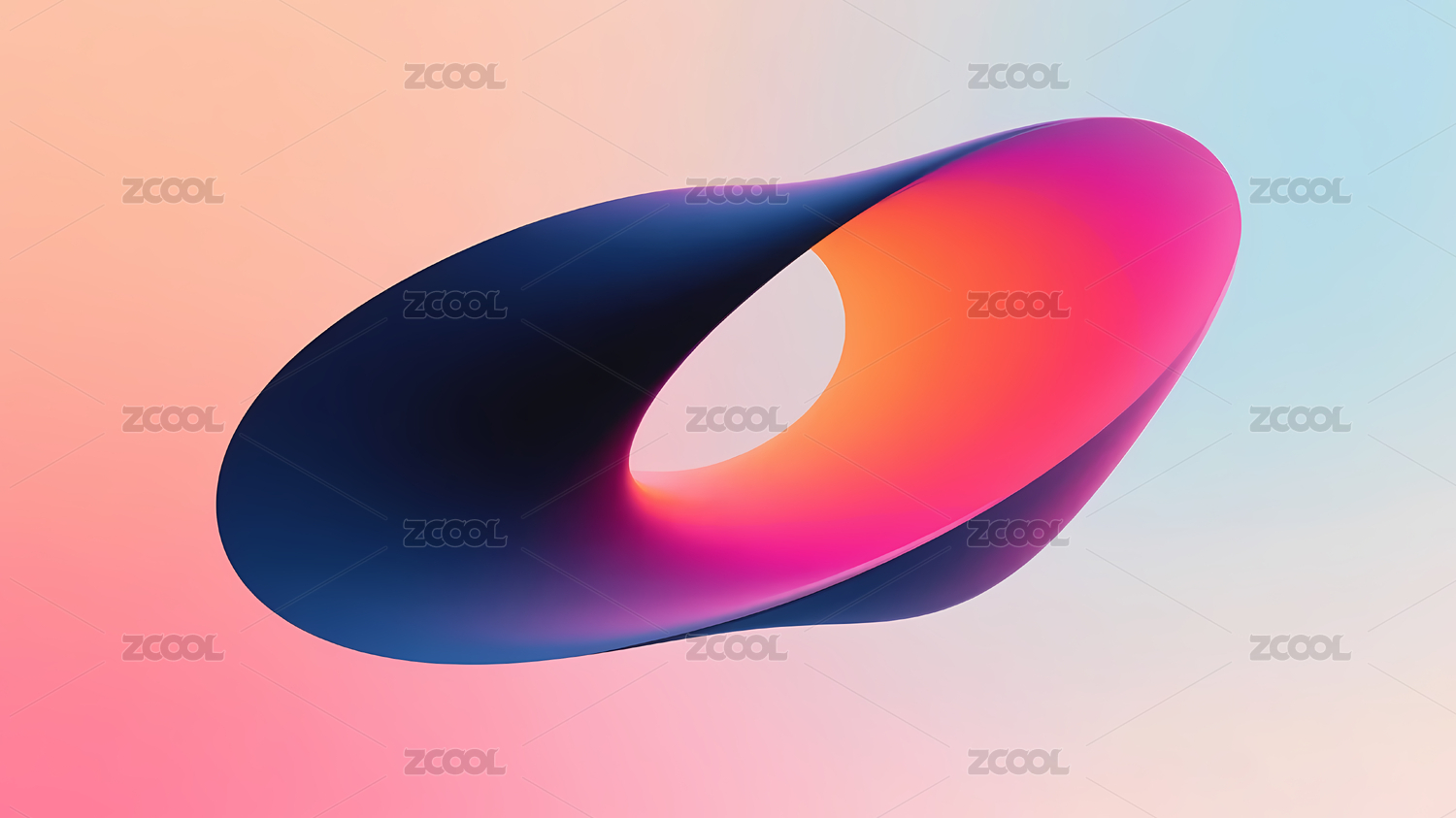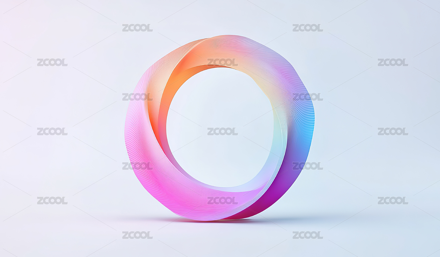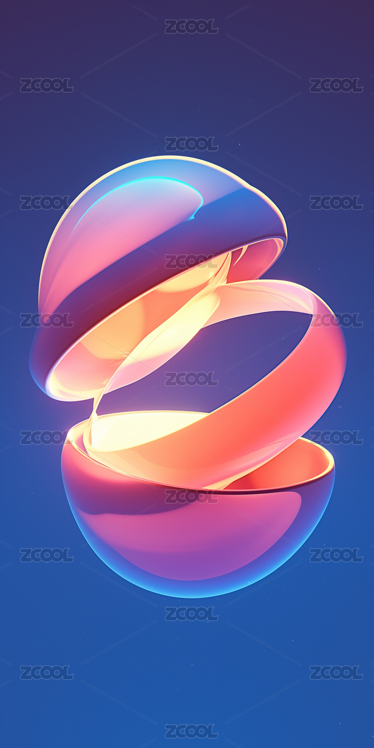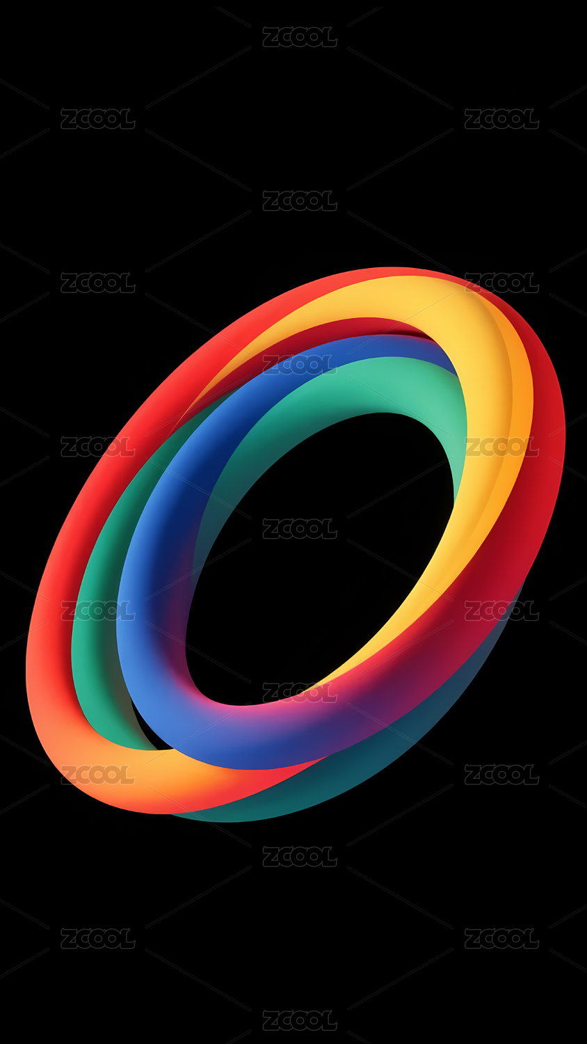 彩色透明荧光色缠绕晶体圆环3D赛博插画