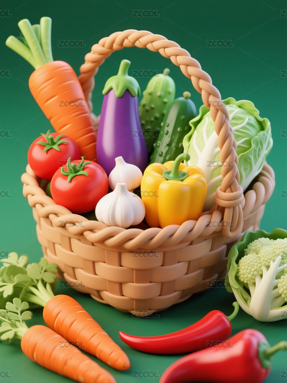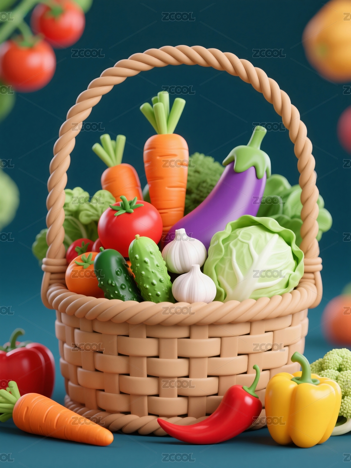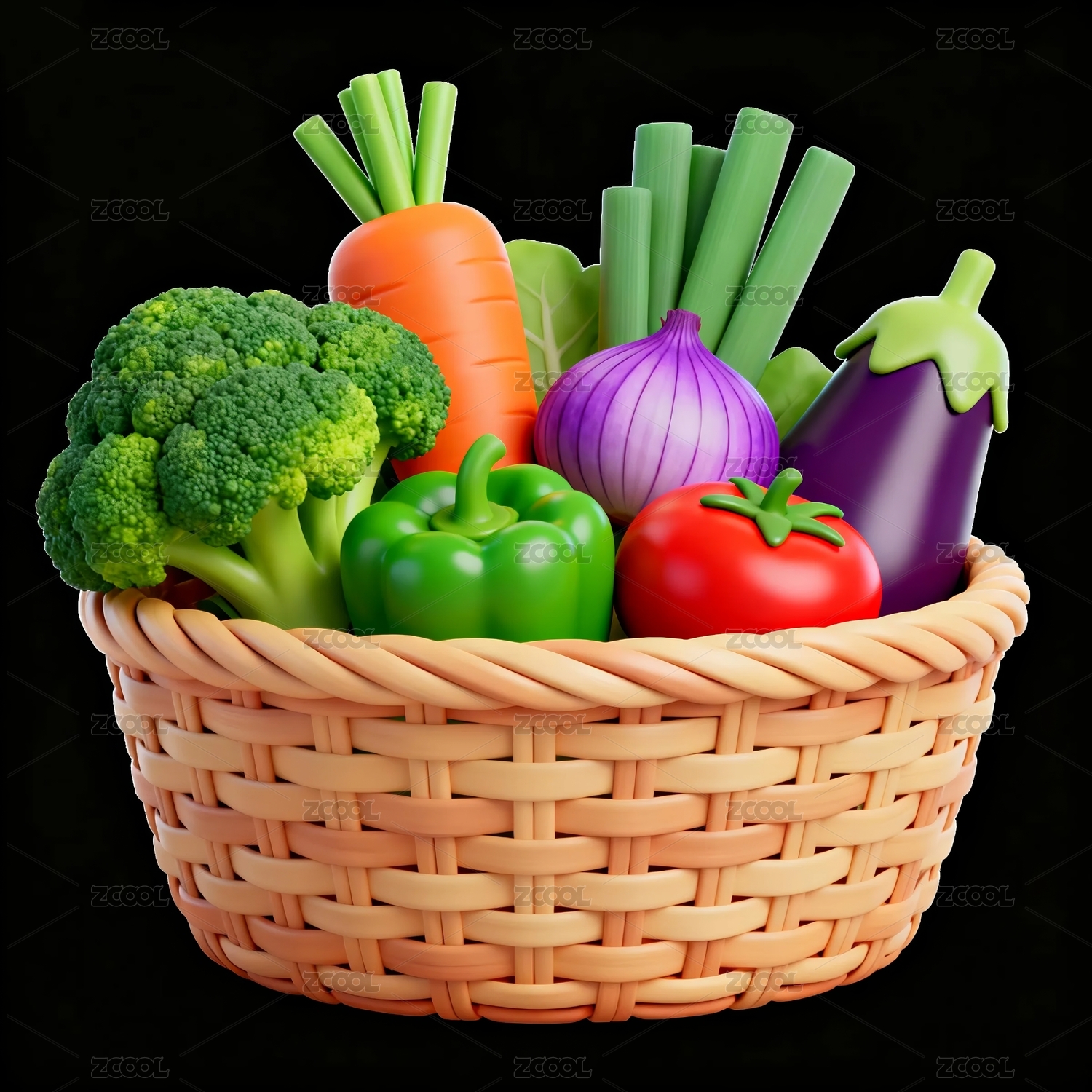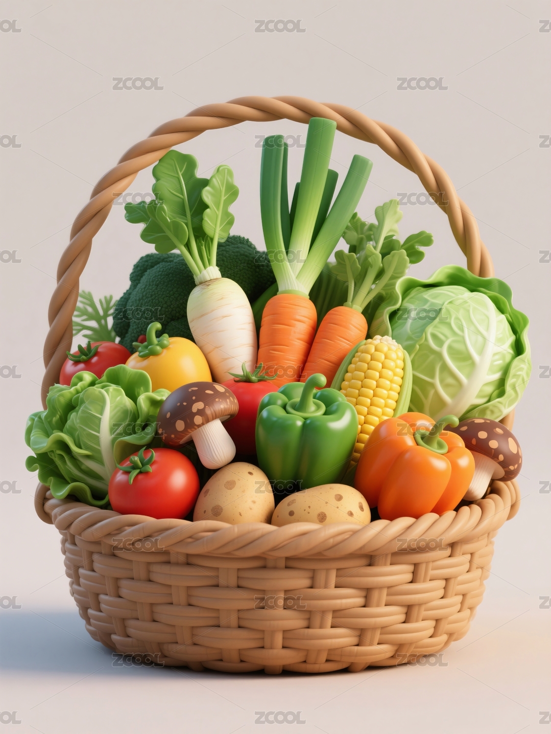 篮子中的有机蔬菜3D立体图