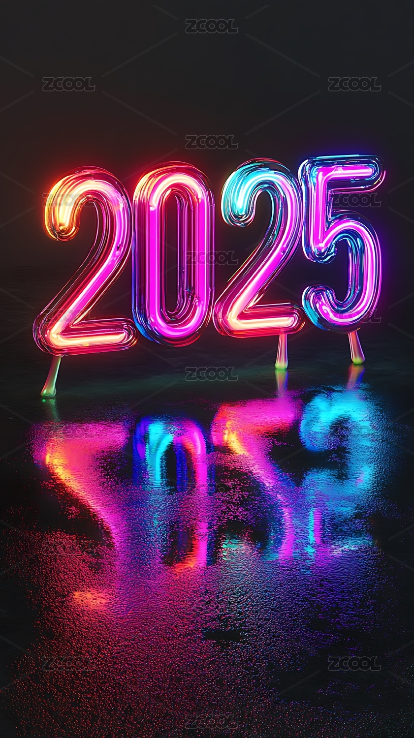 红色,背景,质感,蓝色,渐变,色彩,墙面,数字,2025,霓虹灯