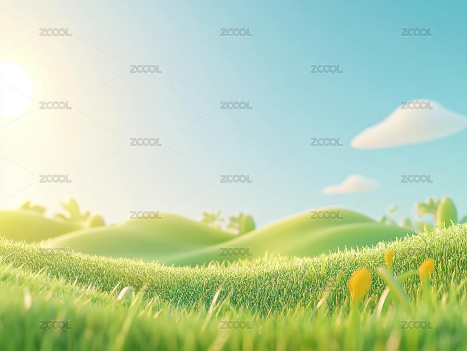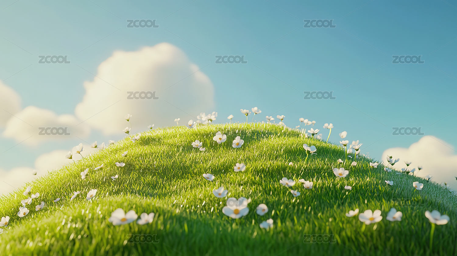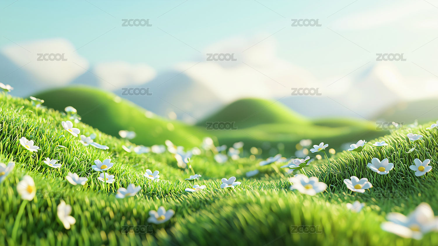 3D卡通春天草地可爱粉色花朵三维自然背景