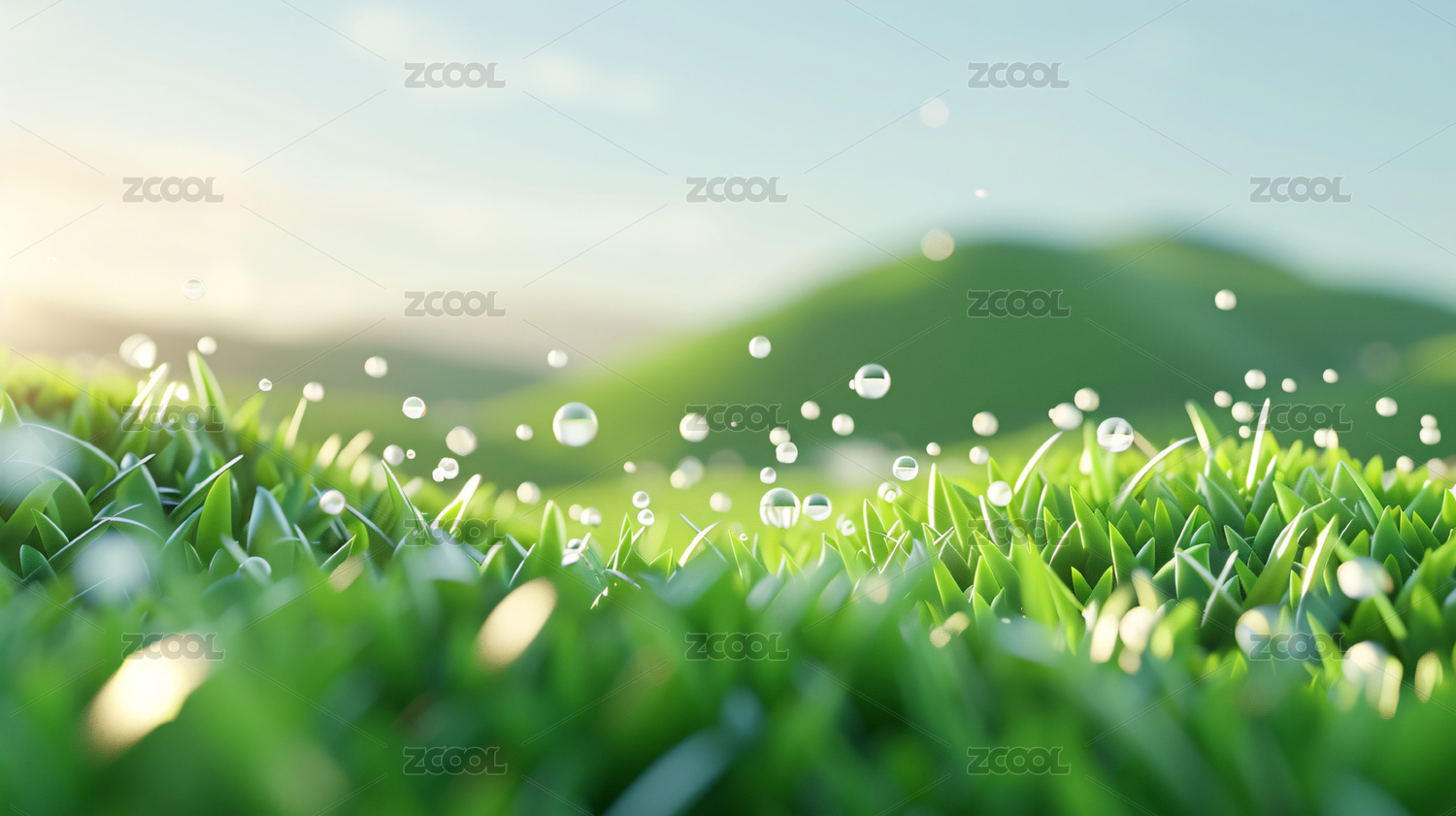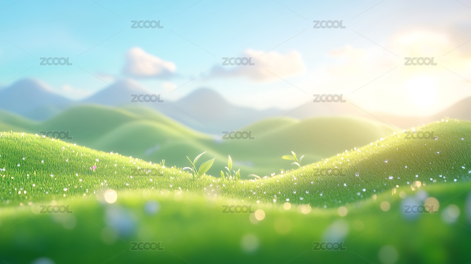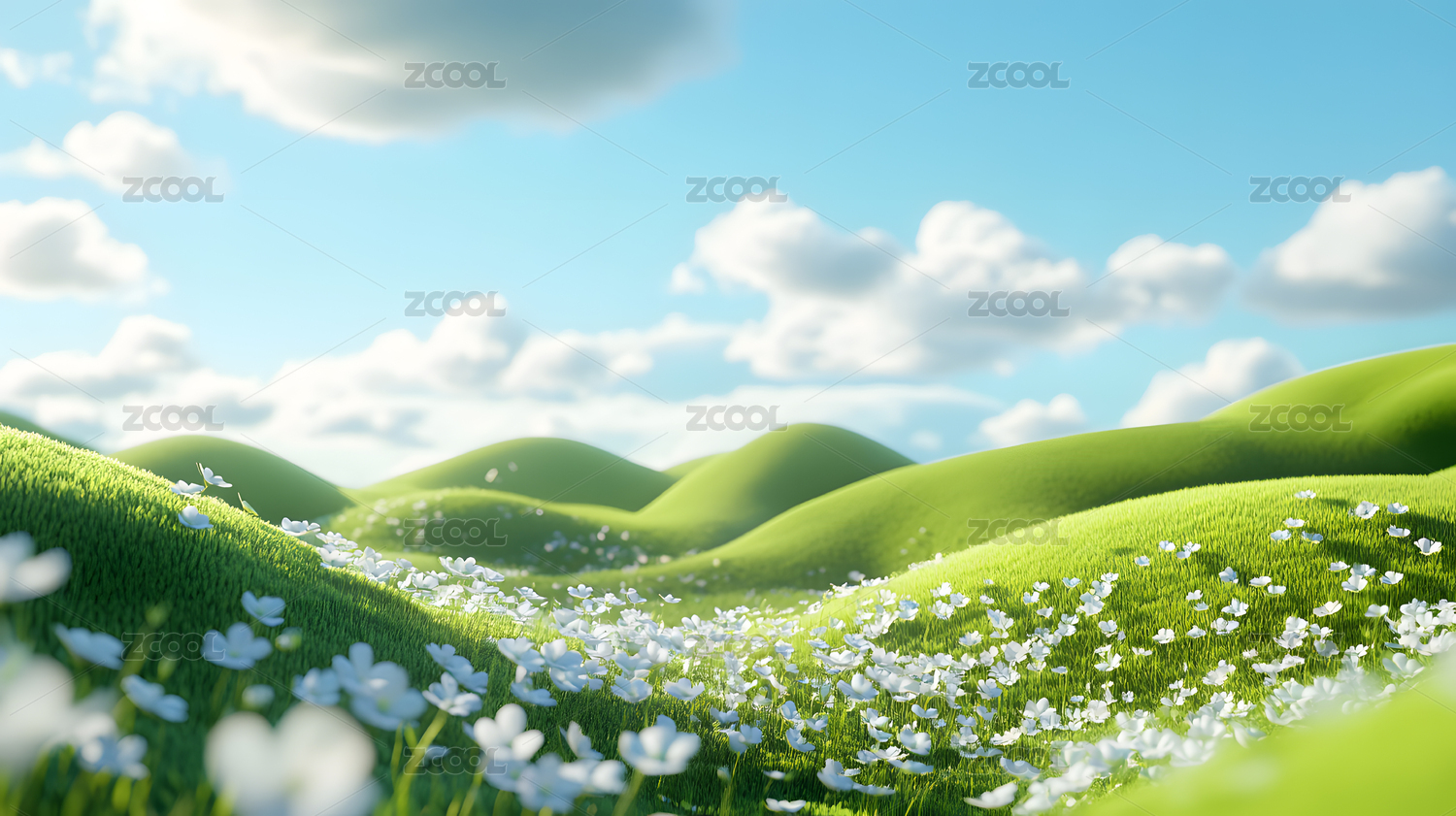 3D卡通春天草地可爱粉色花朵三维自然背景
