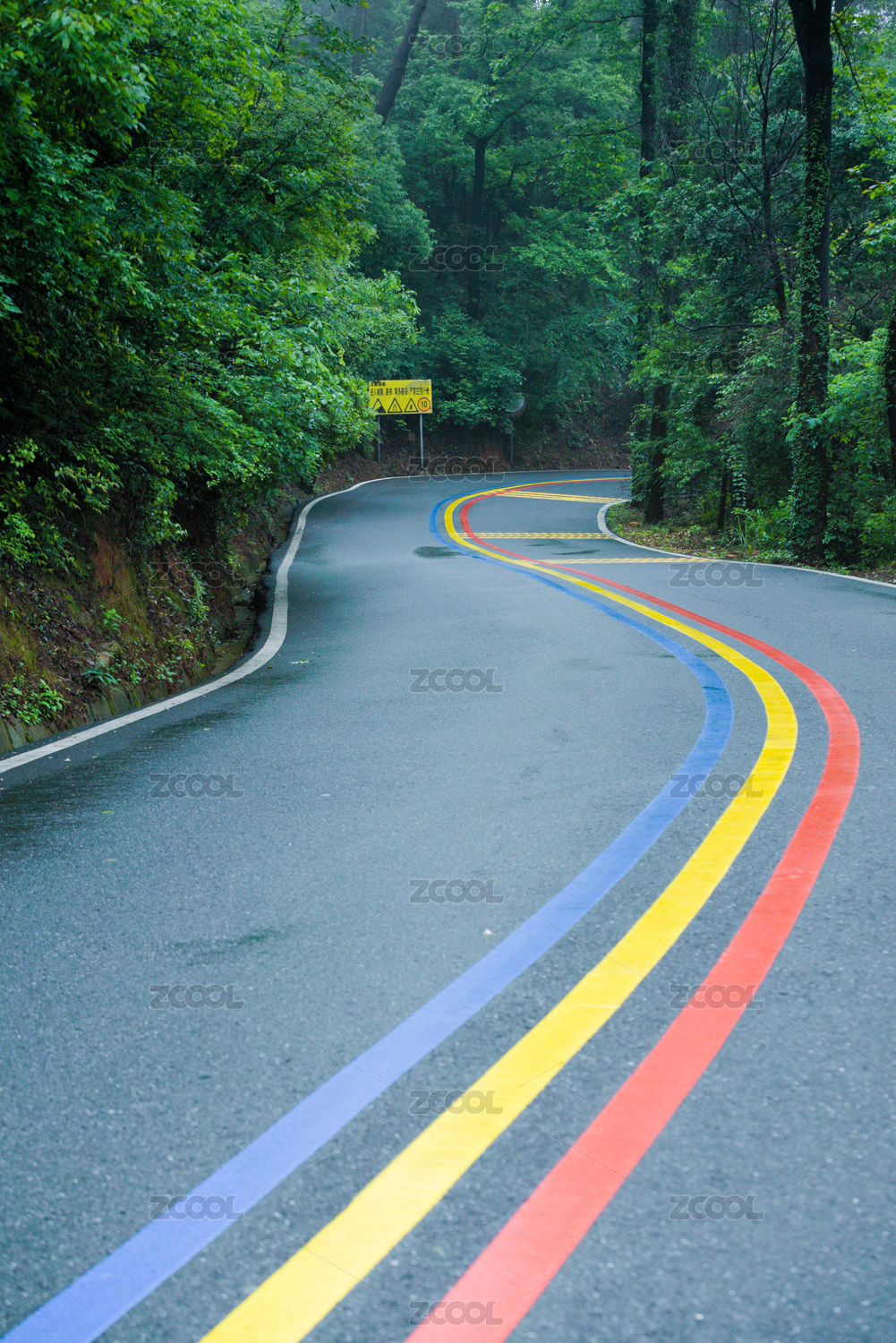 乡村,小路,彩色标线,护栏,阴影,房屋,植被,自然风光,彩色,道路