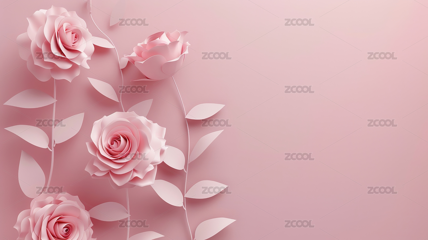 粉红色背景上的玫瑰和玫瑰特写镜头
