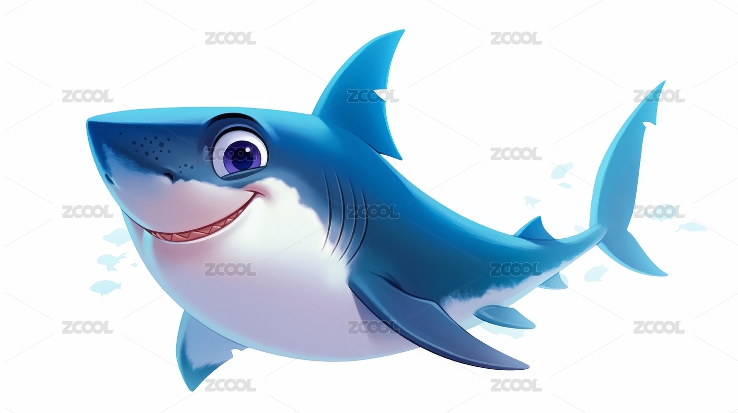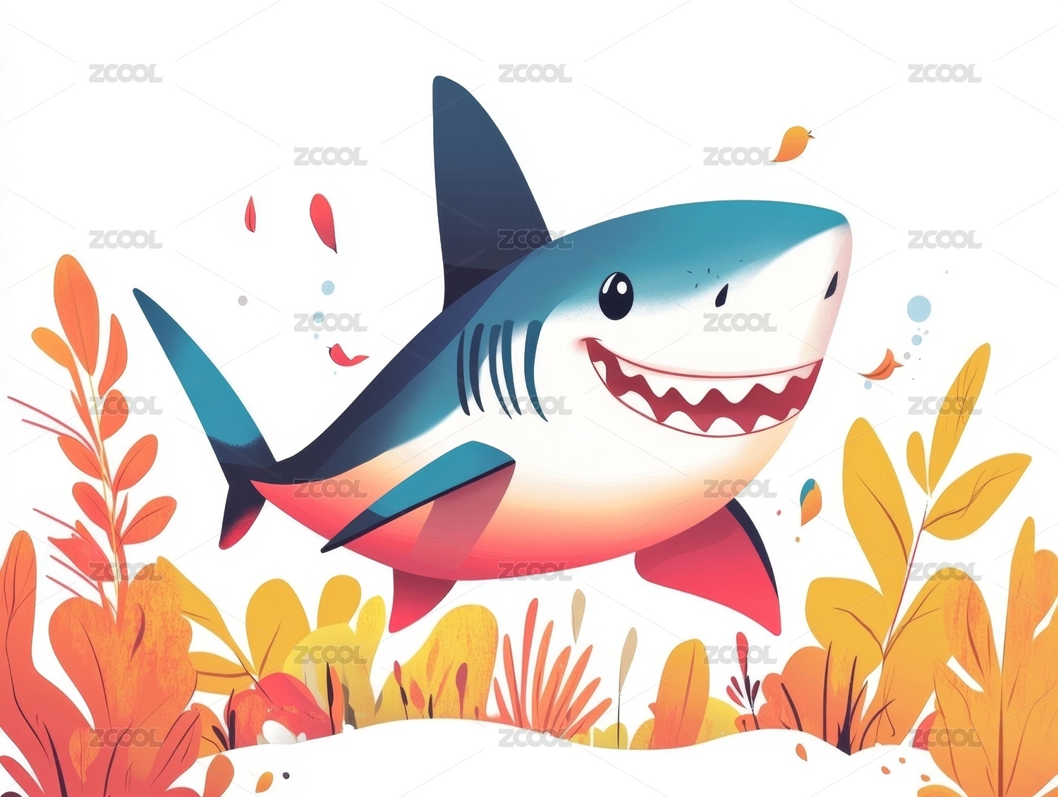 海洋中一条尖牙大嘴的凶猛鲨鱼插画绘画