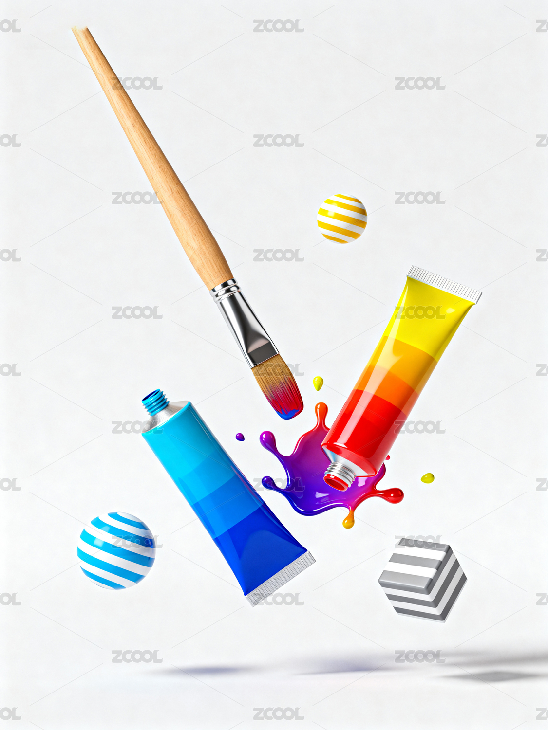 画笔,颜料,飞溅,色彩,蓝色,黄色,粉色,创意,艺术,动态