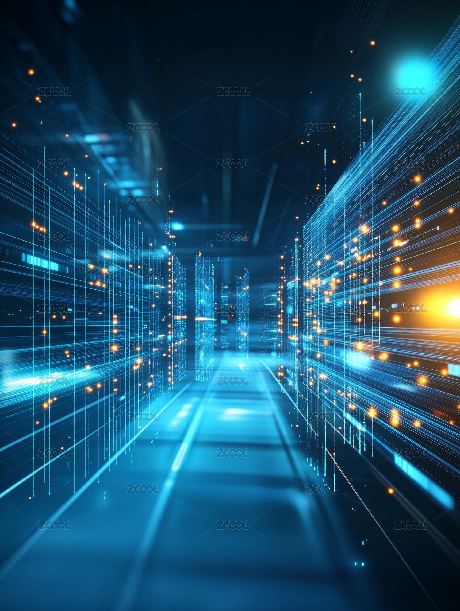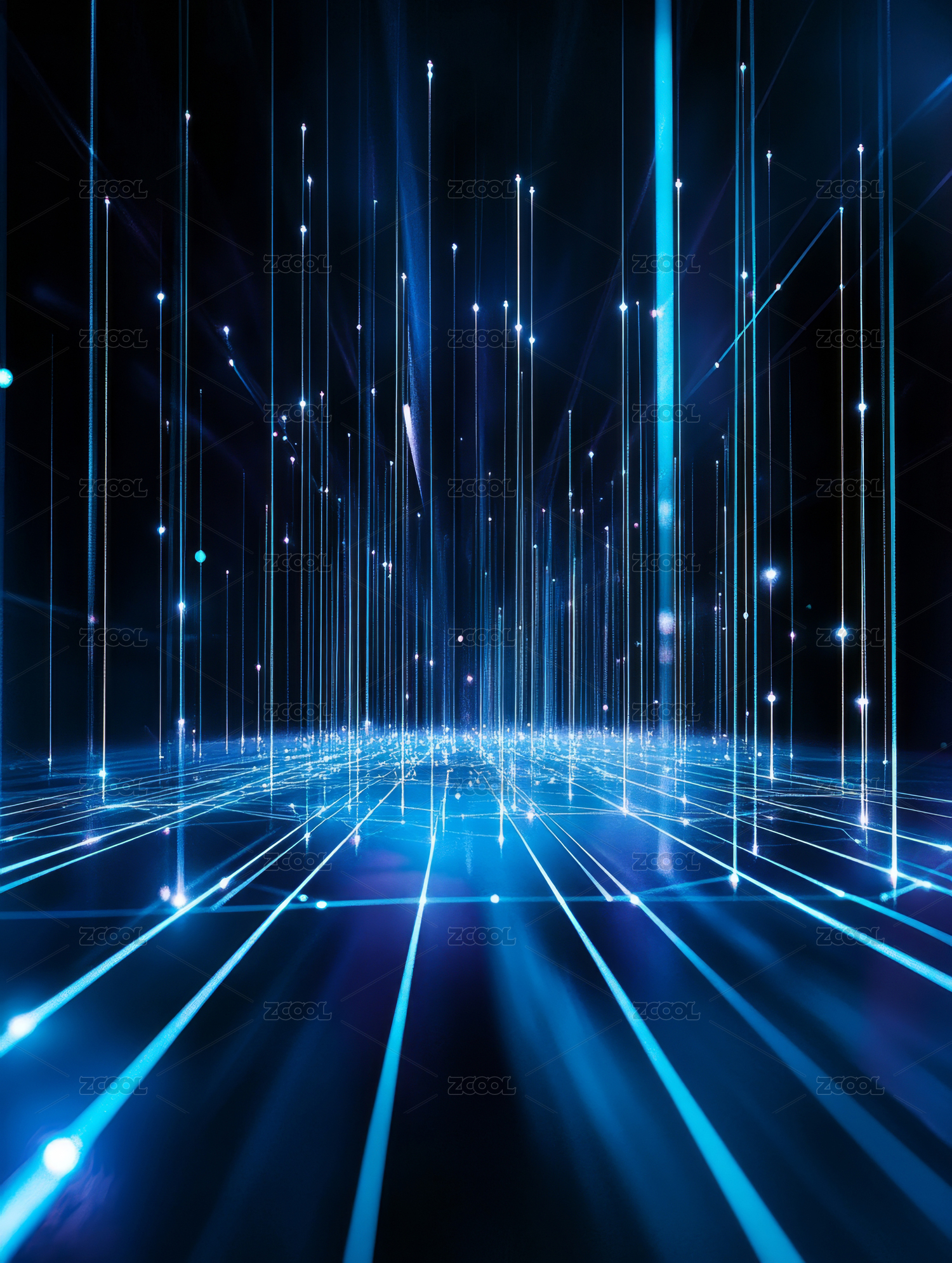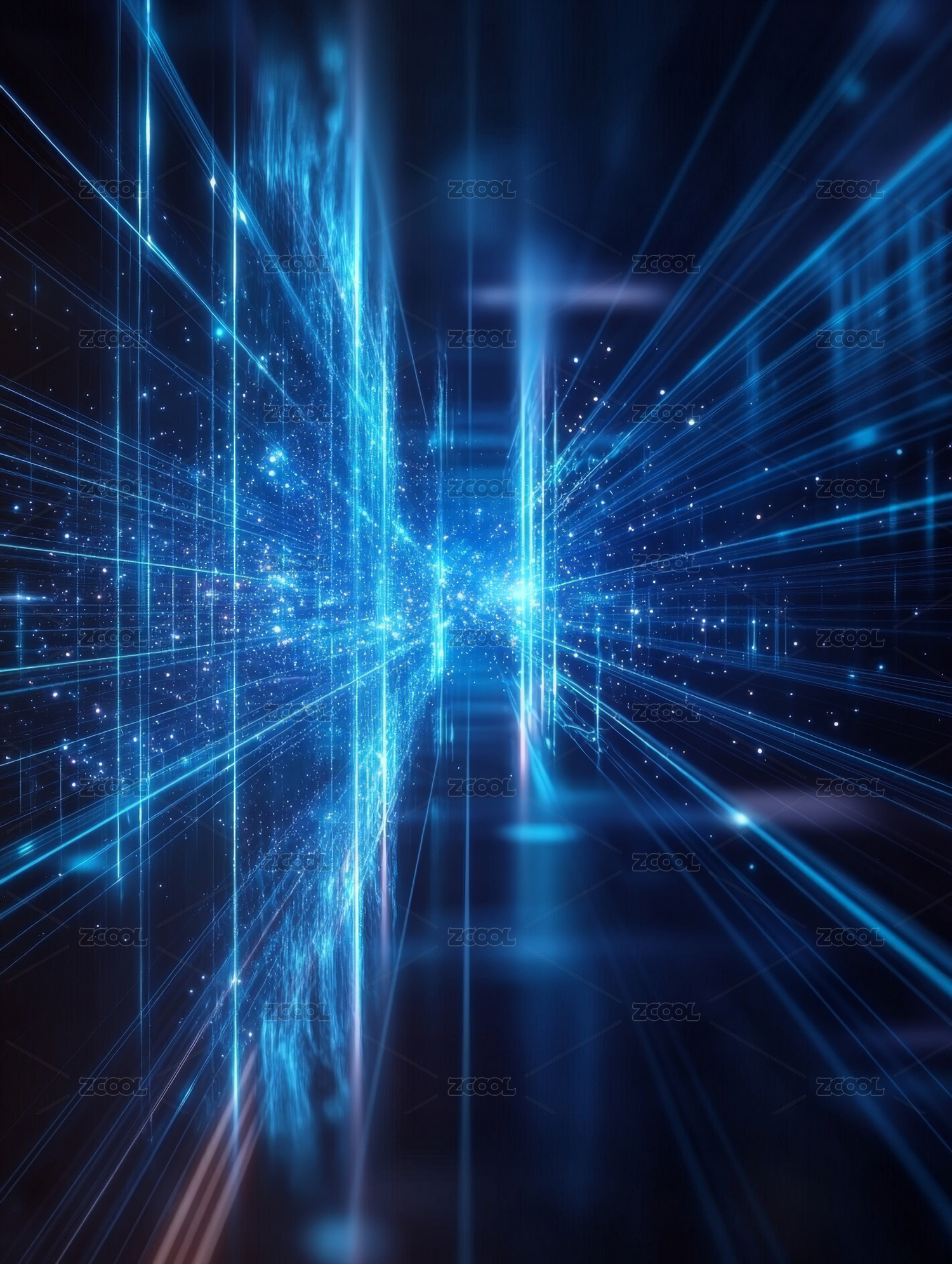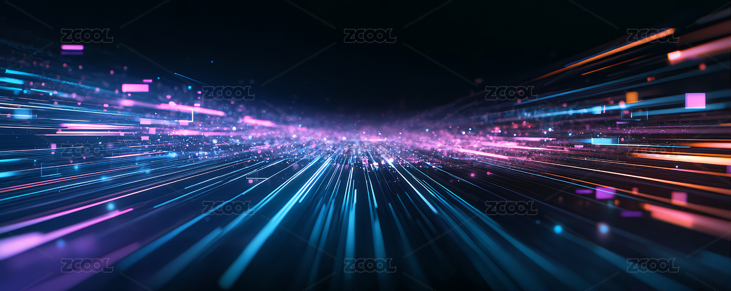 数字科技感光束交织的抽象场景