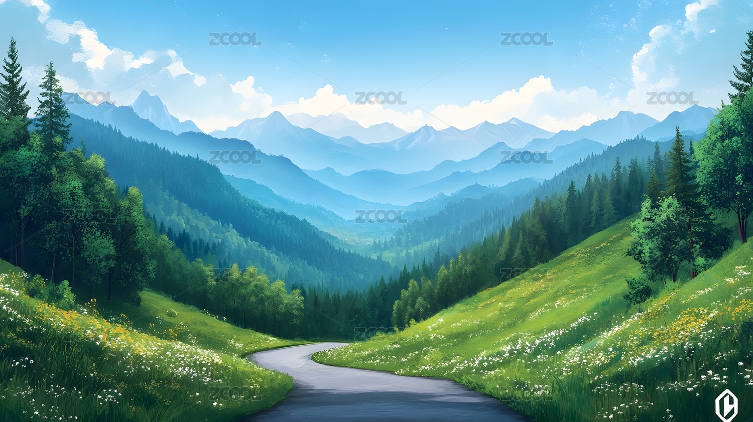 大自然水彩风景插画