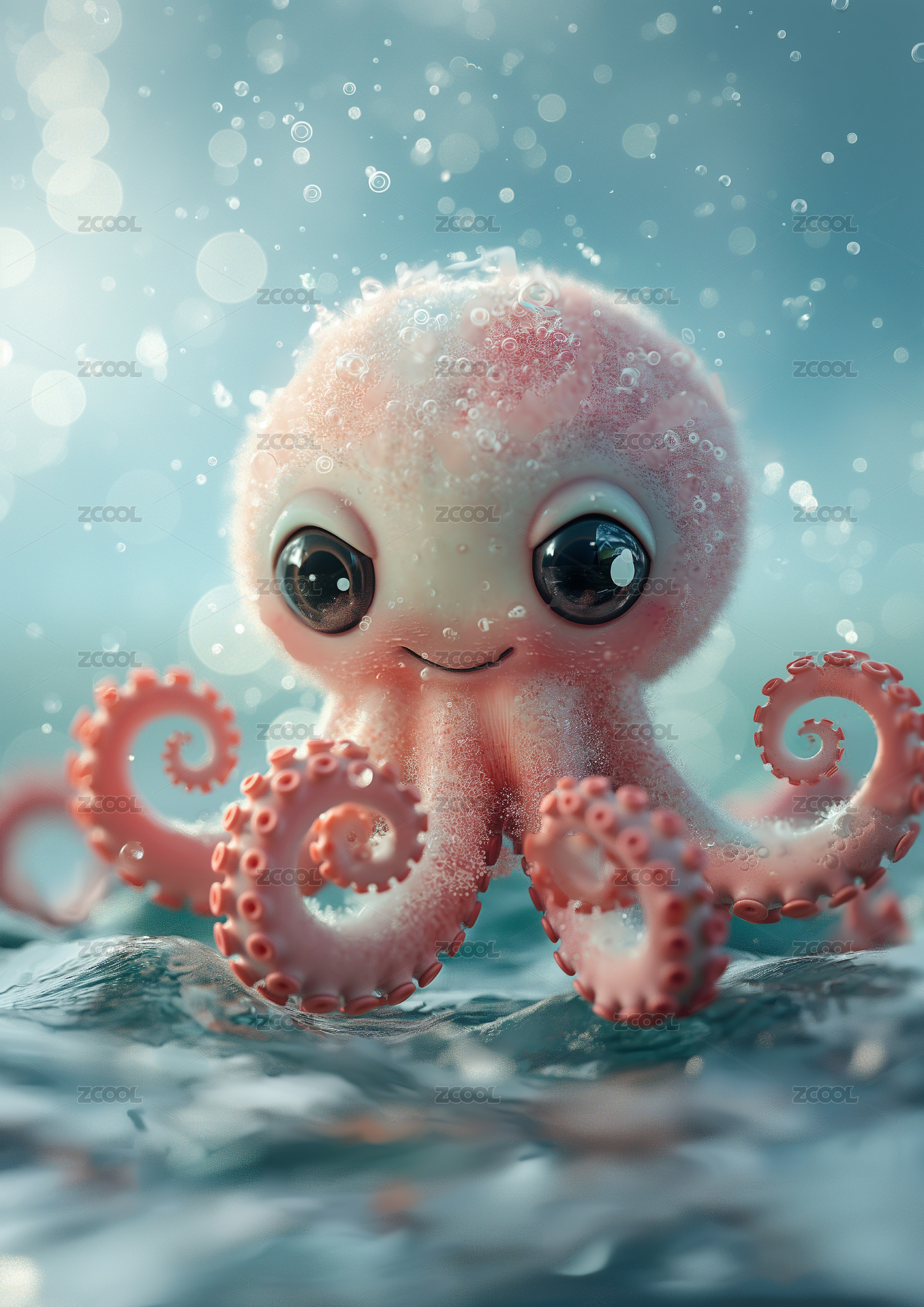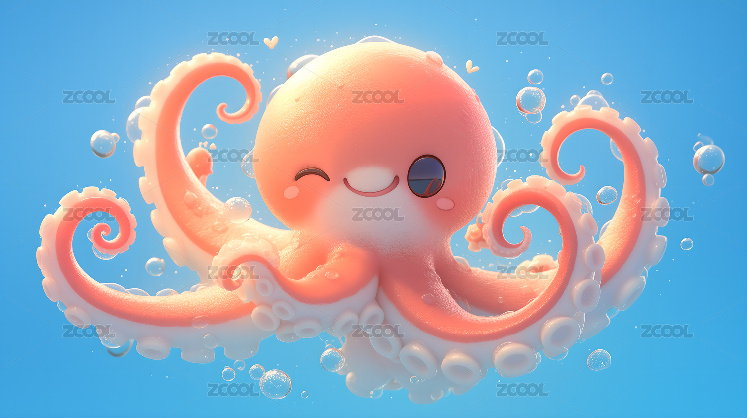 章鱼可爱唯美野生动物3D卡通插画壁纸