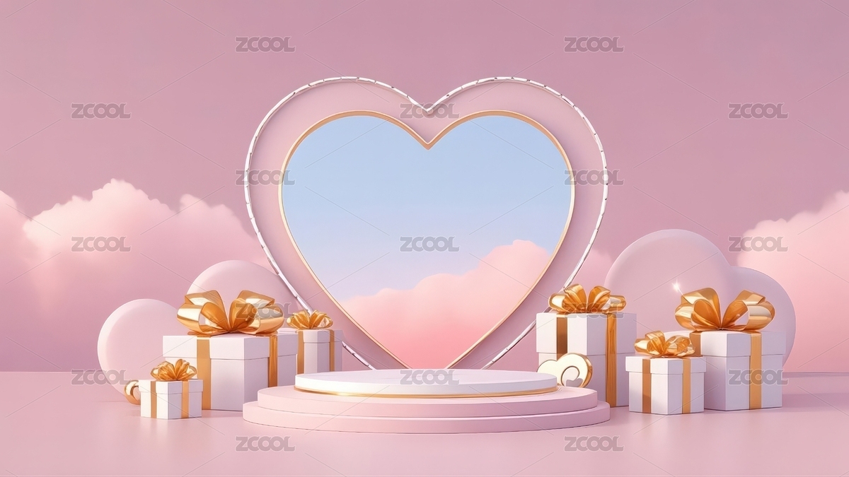 七夕情人节带气球的礼物盒展台爱情主题背景