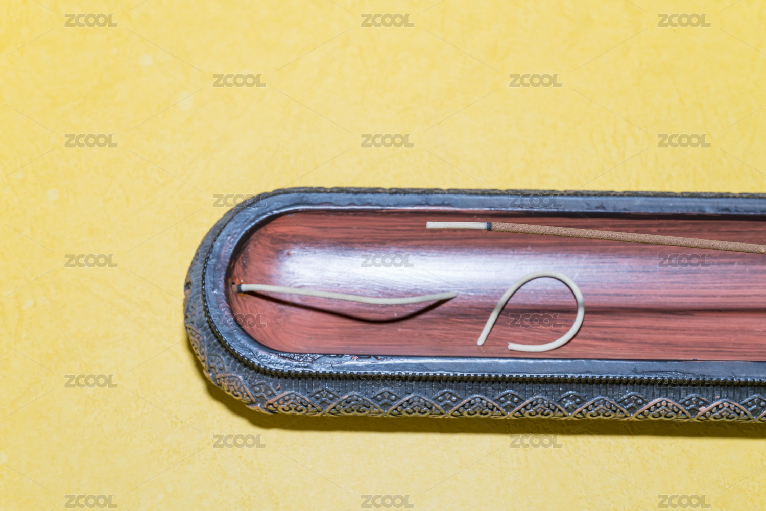 金色背景板上的香插和线香