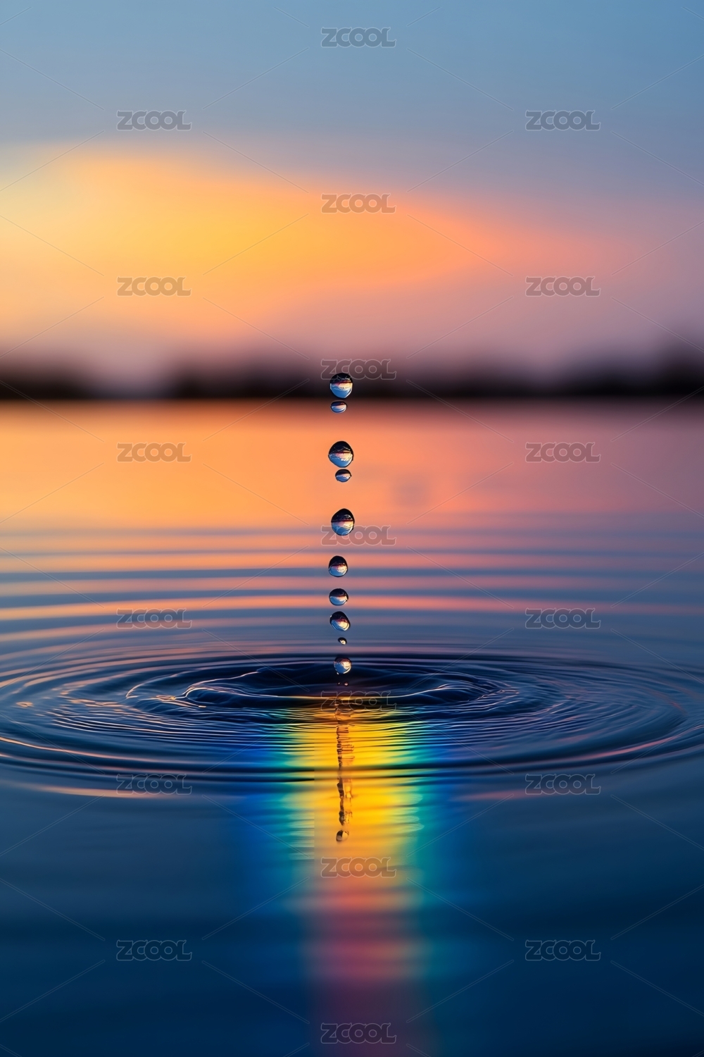 自然,山峰,落日,湖水,涟漪,水滴,夕阳,景色