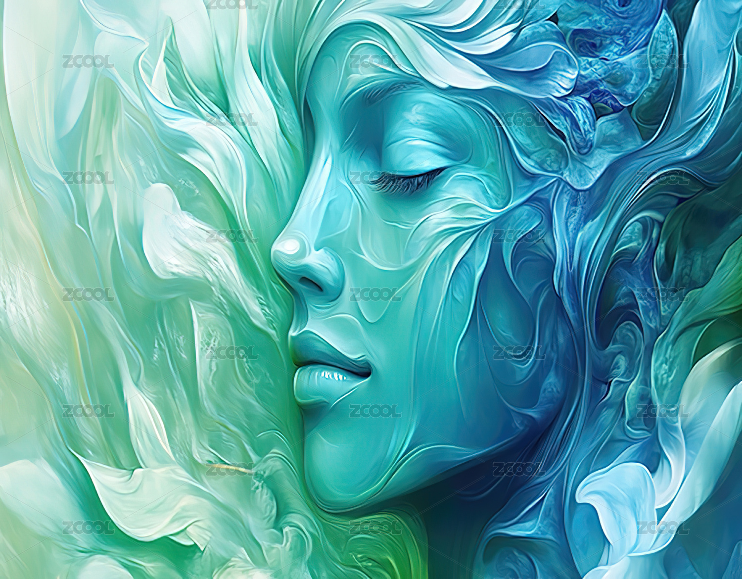 创意抽象科幻彩色颜料女性青年发光人像插画