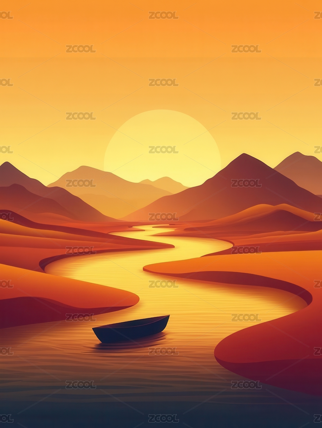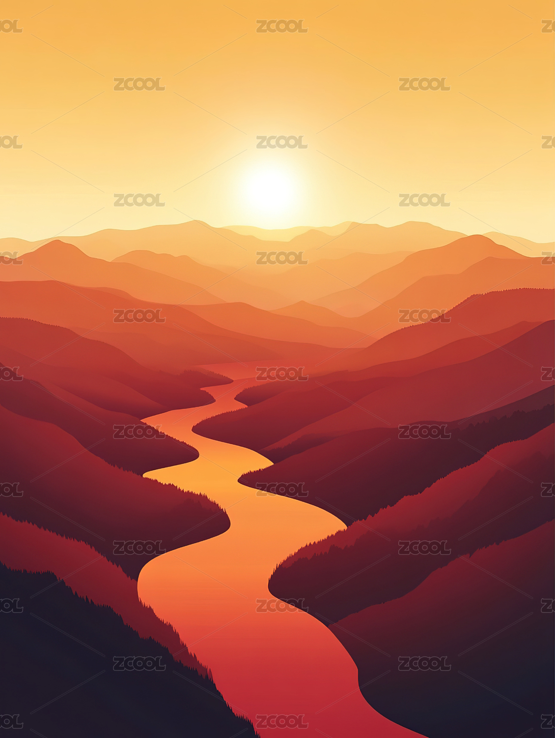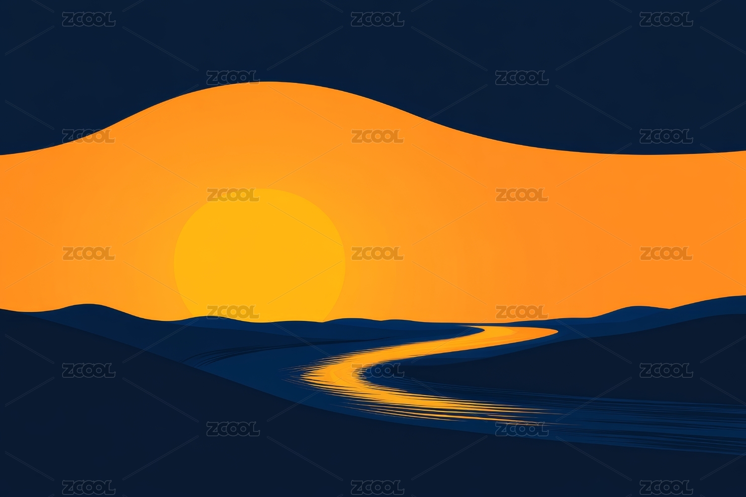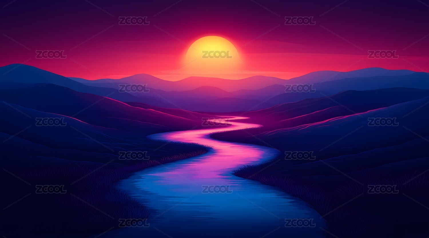 日落山川抽象插画