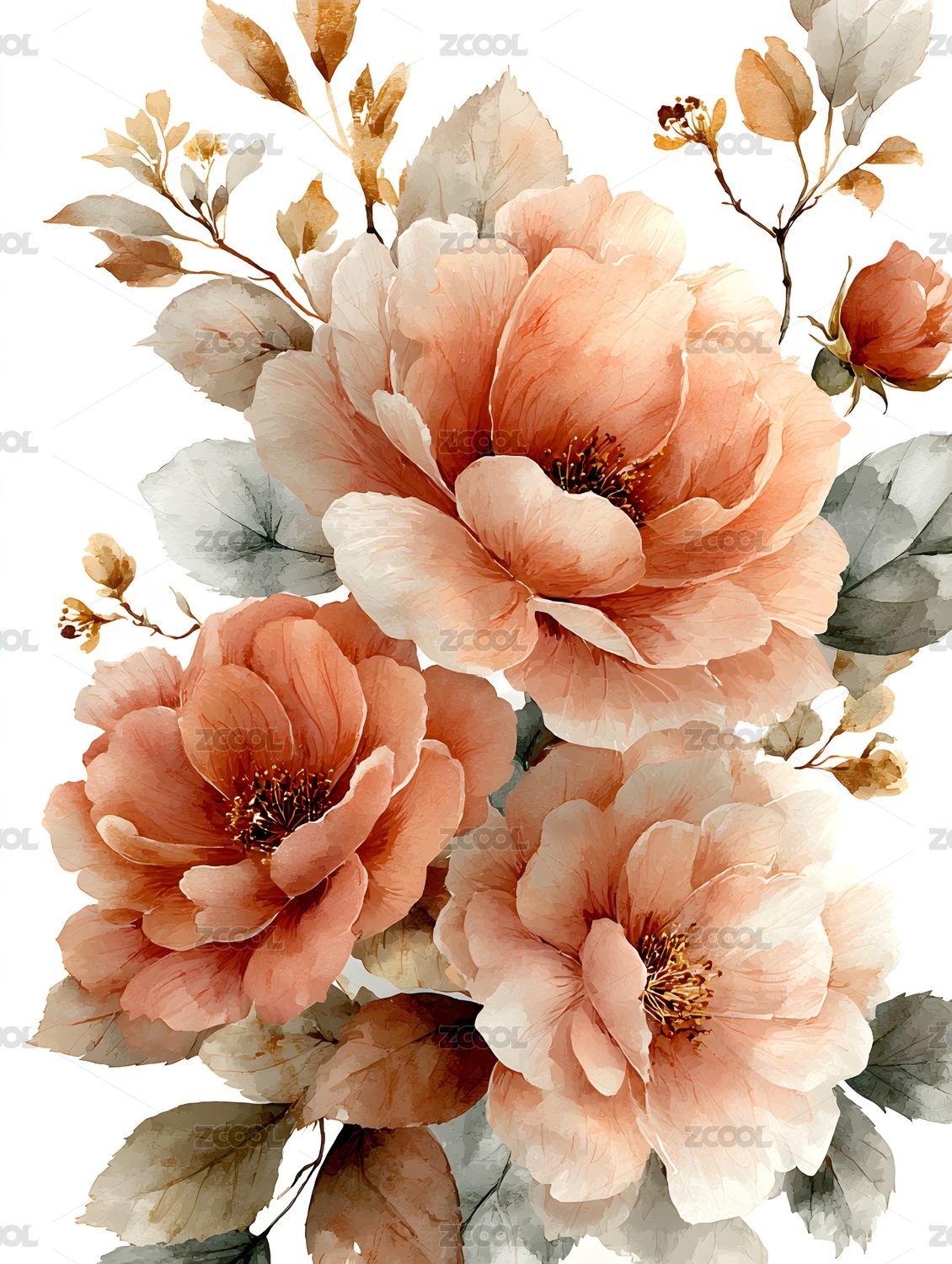 粉色,米色,复古,菊花,水彩,绘画,植物,花卉,艺术,抽象
