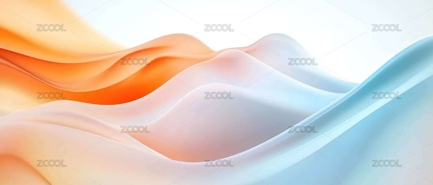 蓝橙渐变丝绸波浪抽象图案