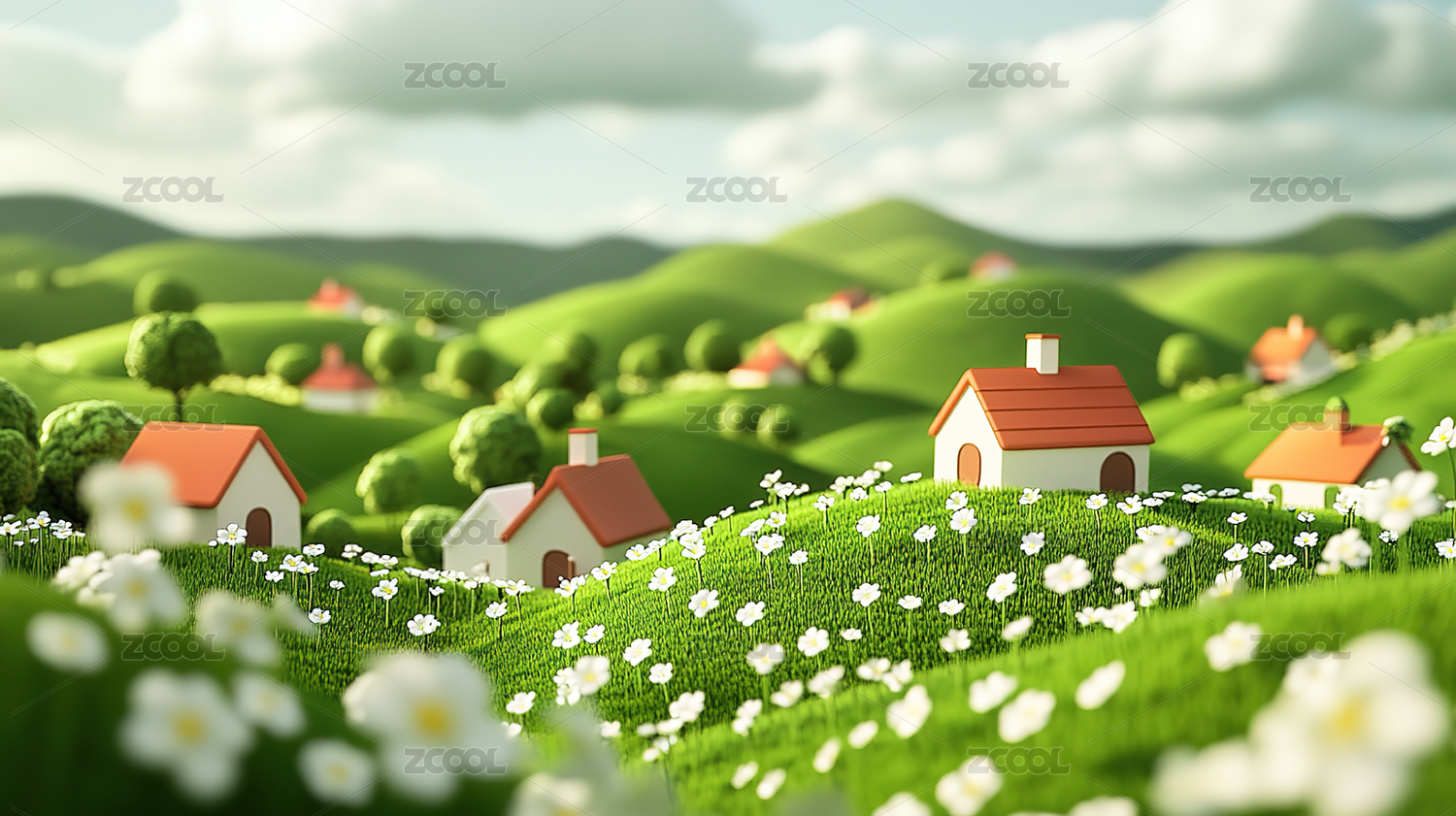 色彩,山丘,房屋,小路,树木,草地,田园,乡村,风景,自然