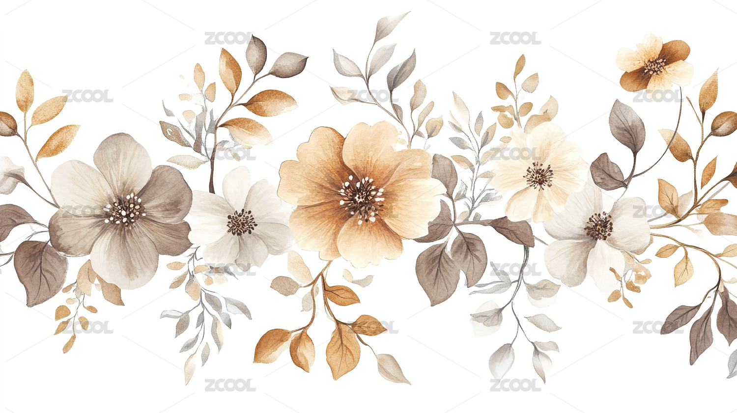 花卉植物插画背景壁纸白底