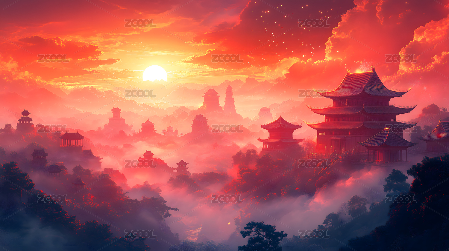 绘画,设计,自然,风景,建筑,天空,艺术,抽象,日落,背景
