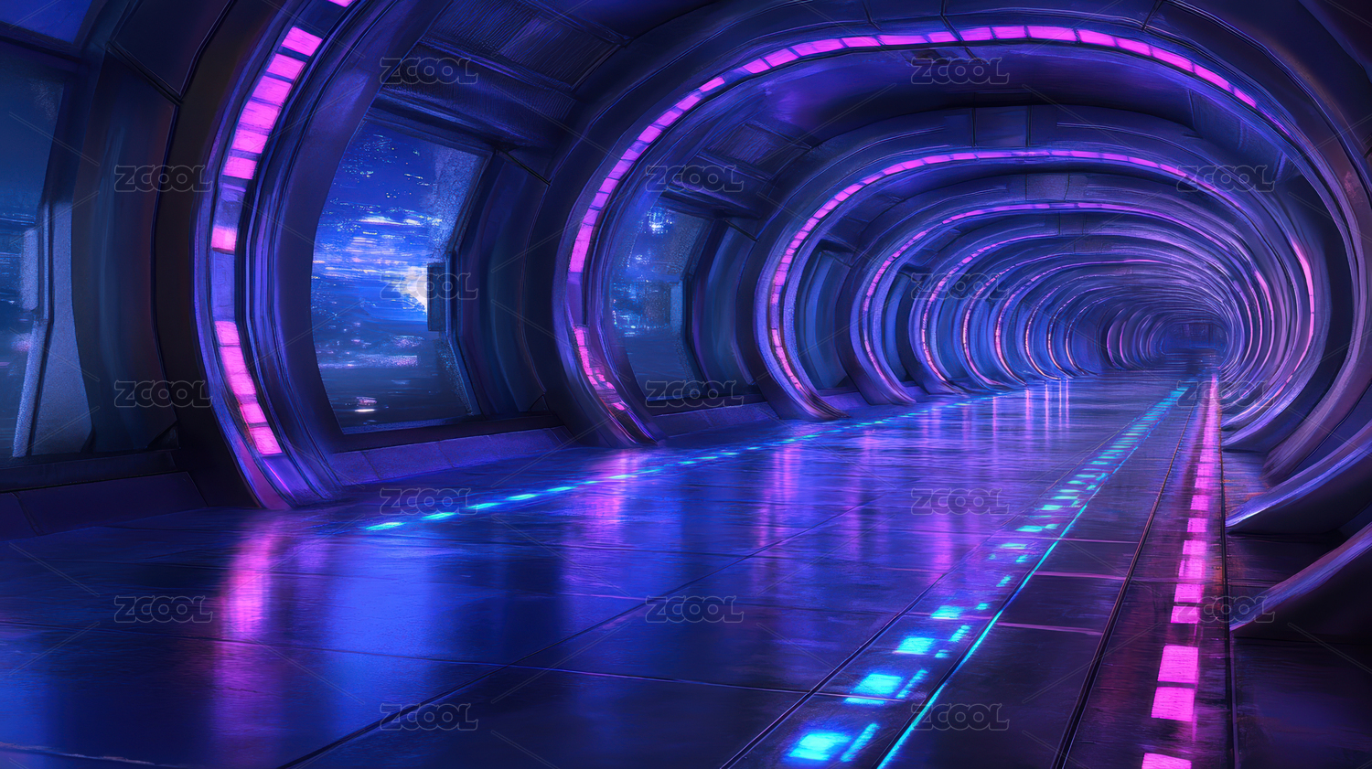 蓝色科幻空间太空仓内部,科技空间广场平台