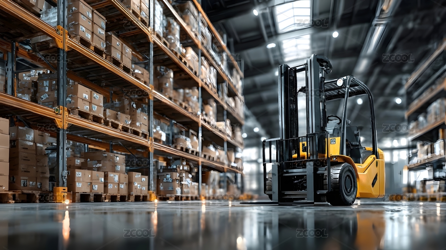 叉车,仓库,货架,托盘,货物,物流,存储,搬运,高效,整洁