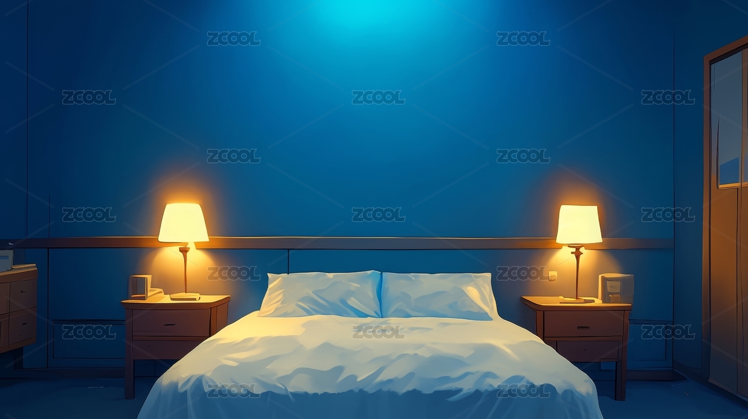 世界睡眠日卧室床睡眠休息放松舒适卡通背景