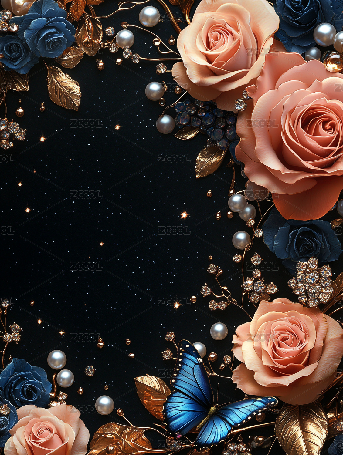 画框,圆形,镶珠,蓝绸,蝴蝶结,宝石,金属,花纹,装饰,古典