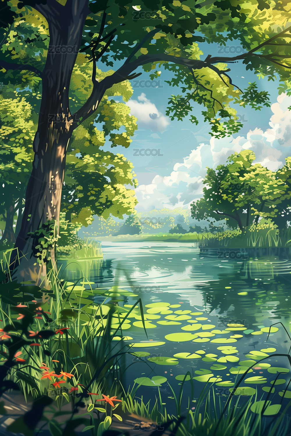 春日江河清澈见底柳树摇曳鱼儿欢跃