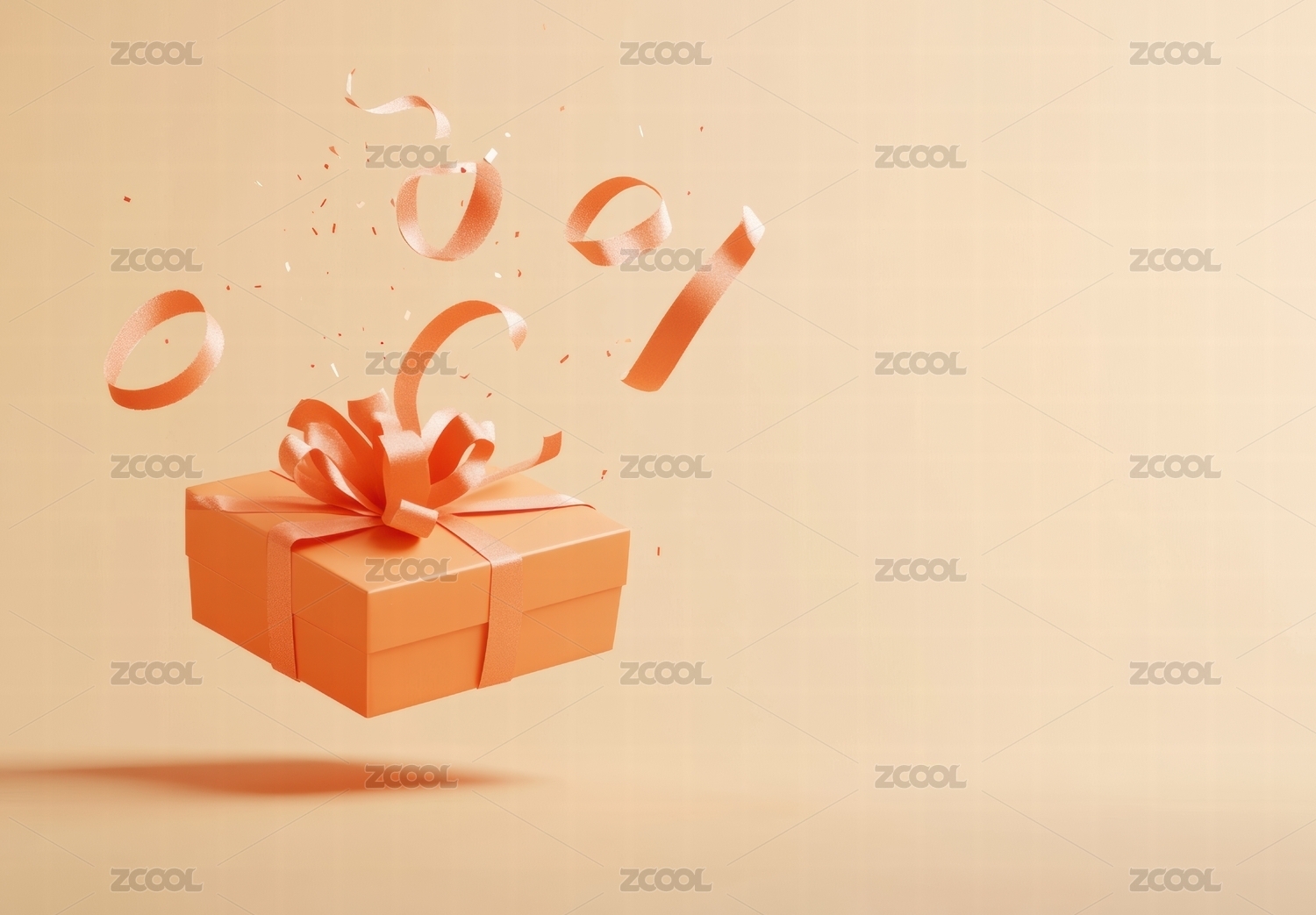礼盒,橙色,金色,丝带,飘动,打开,惊喜,庆祝,节日,礼物
