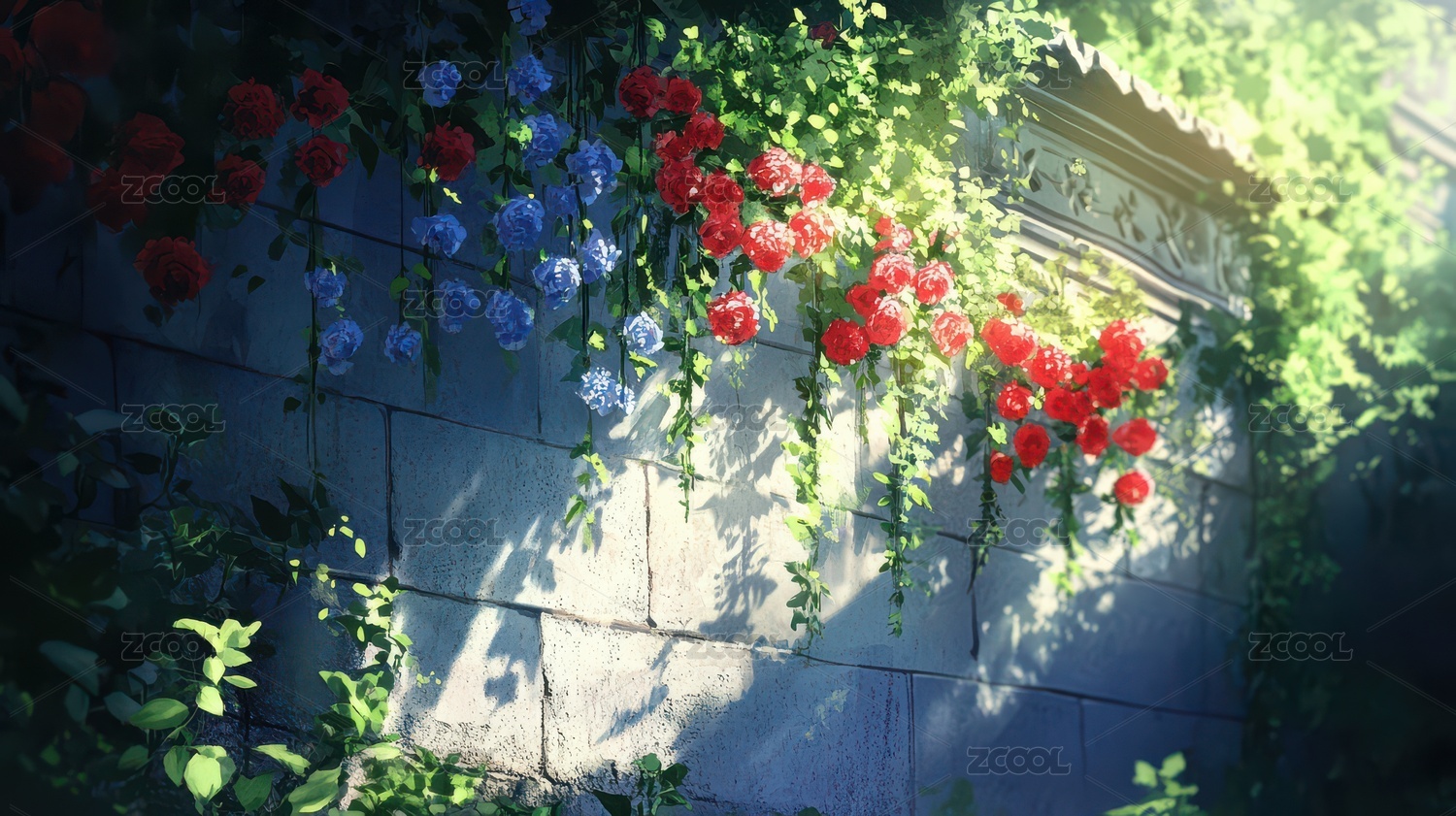 花朵爬满墙面的光影美景