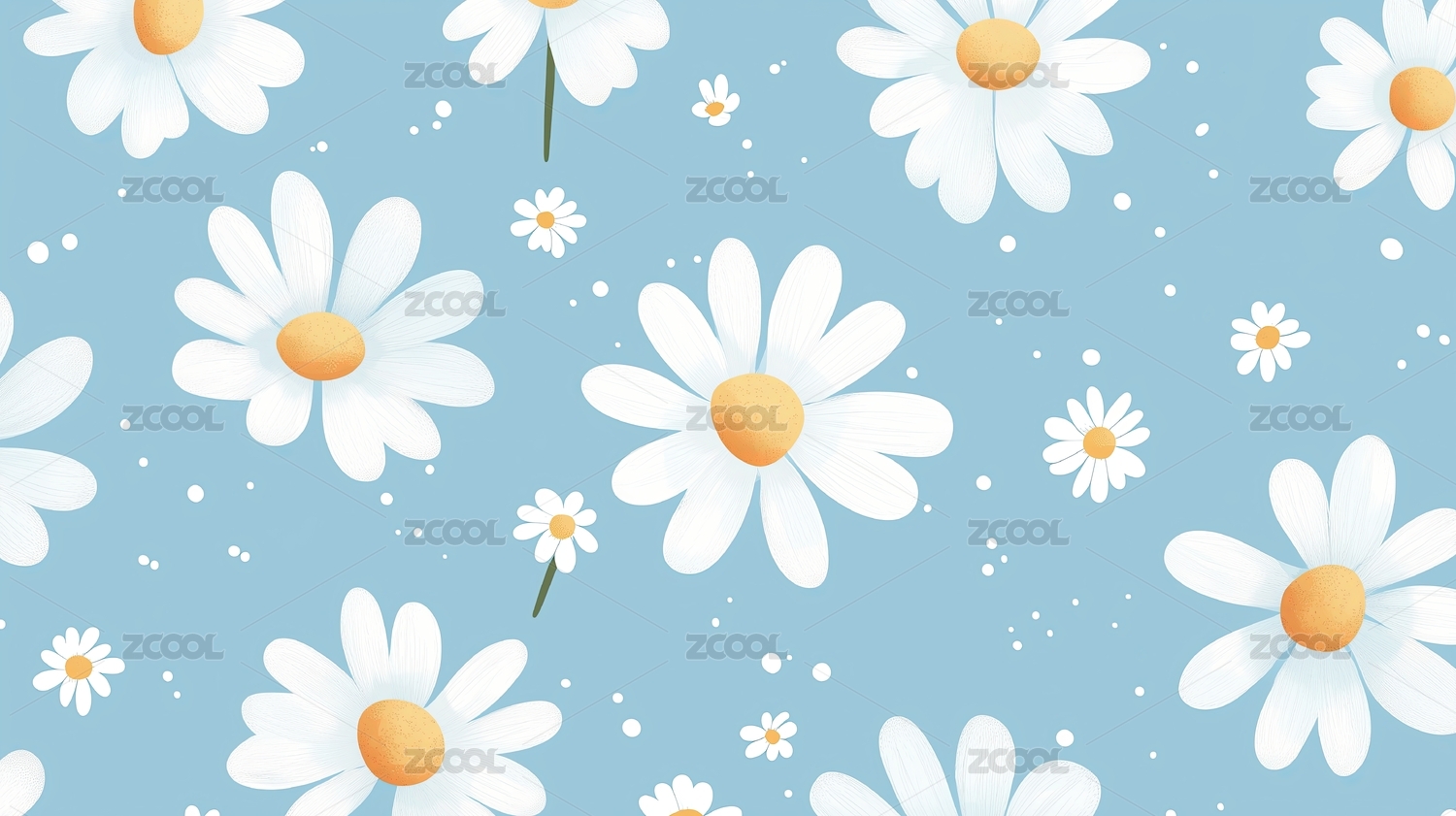 淡蓝色背景下小碎花雏菊图案