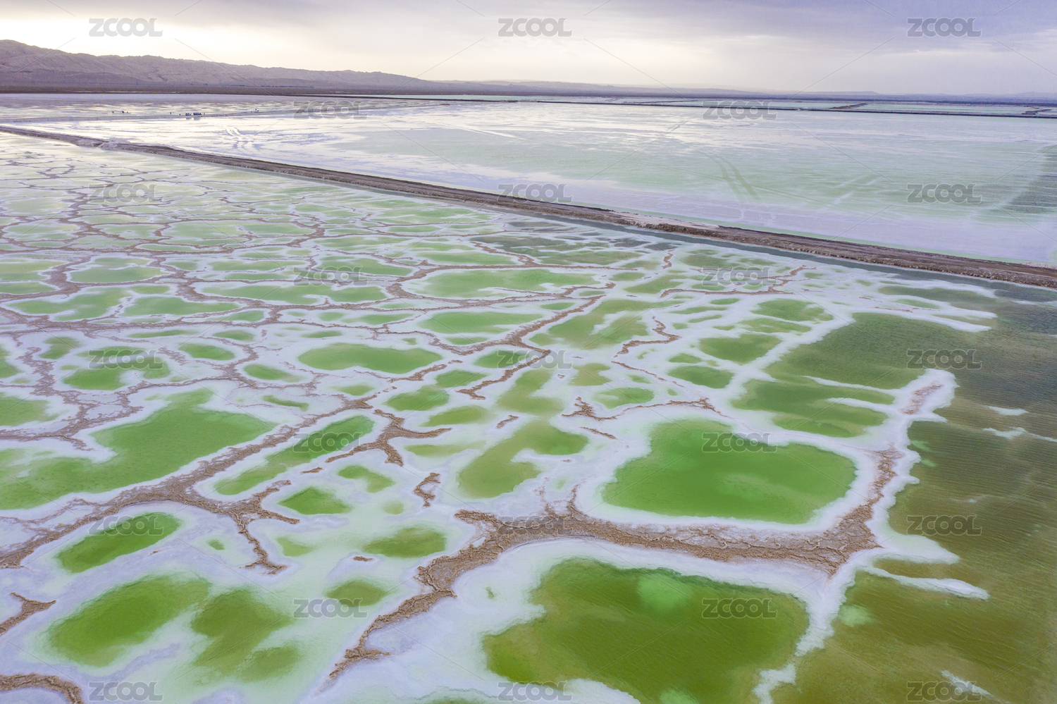 青海海西芒崖翡翠湖盐湖风光绿色工业盐湖泊