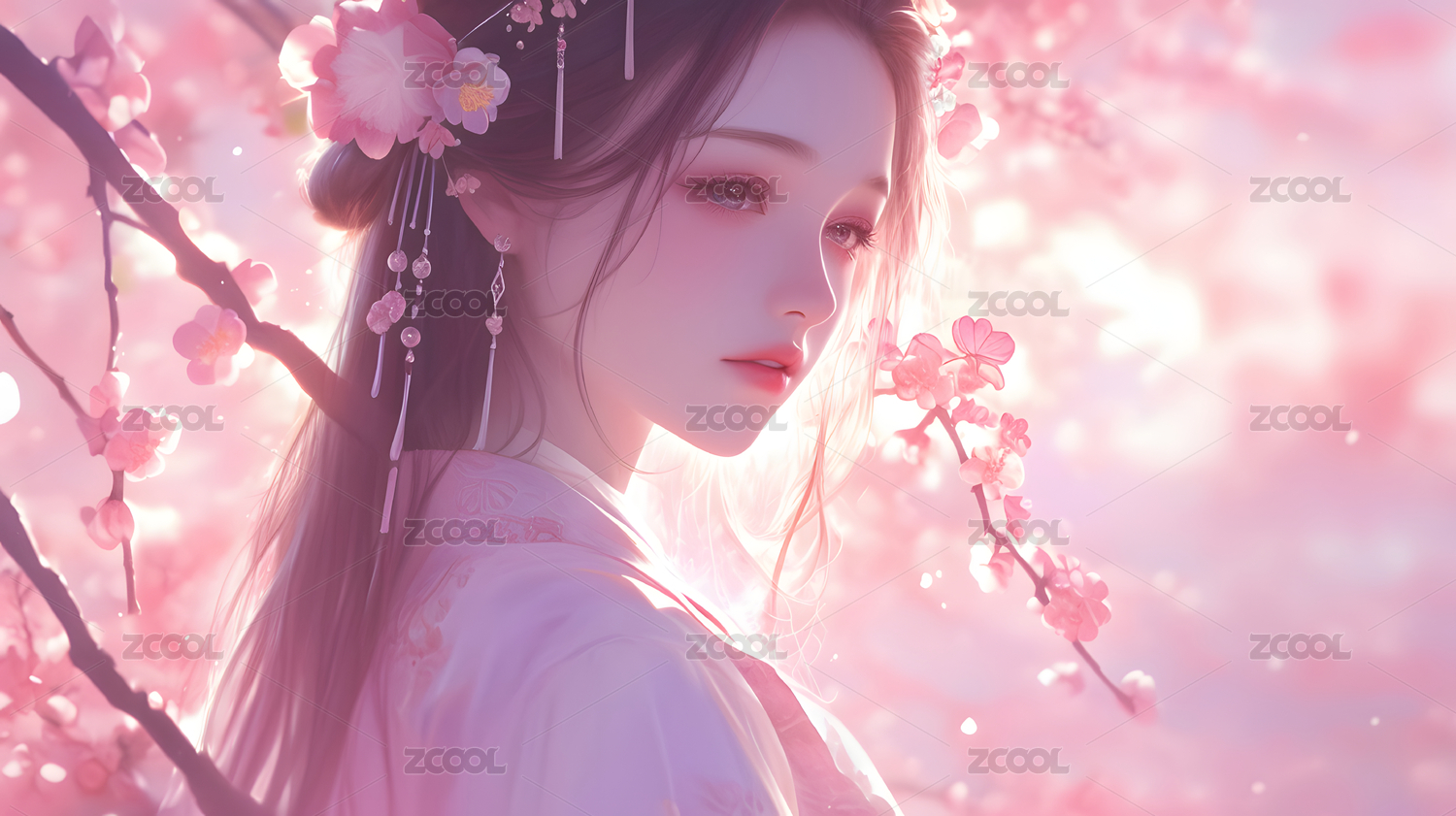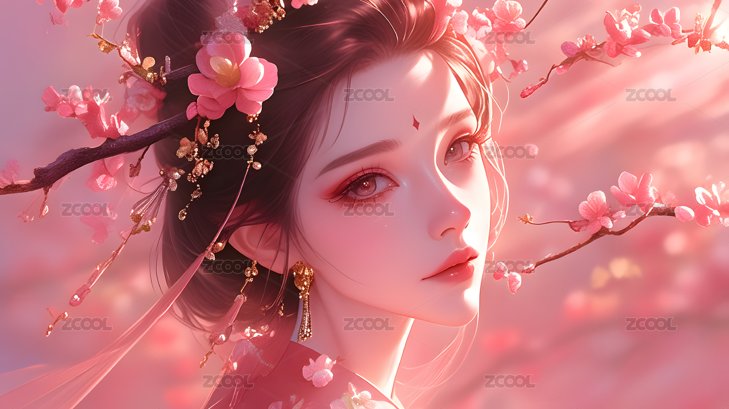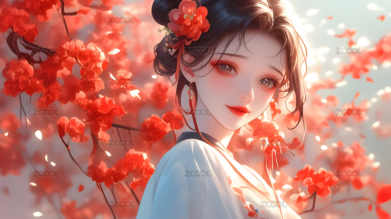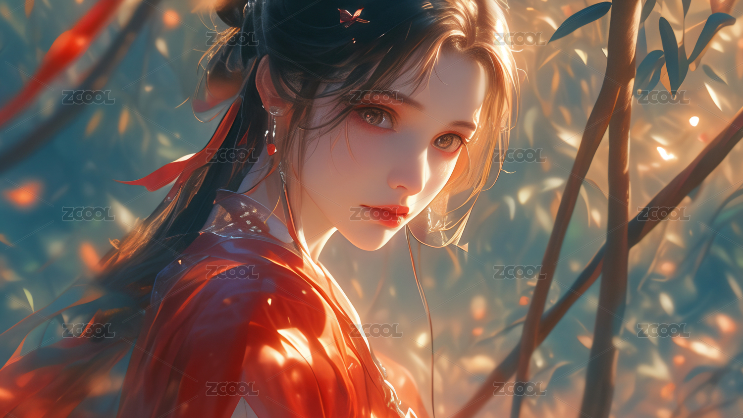 美女,红色,古典,汉服,动漫,二次元,女孩,优雅,头饰,精致