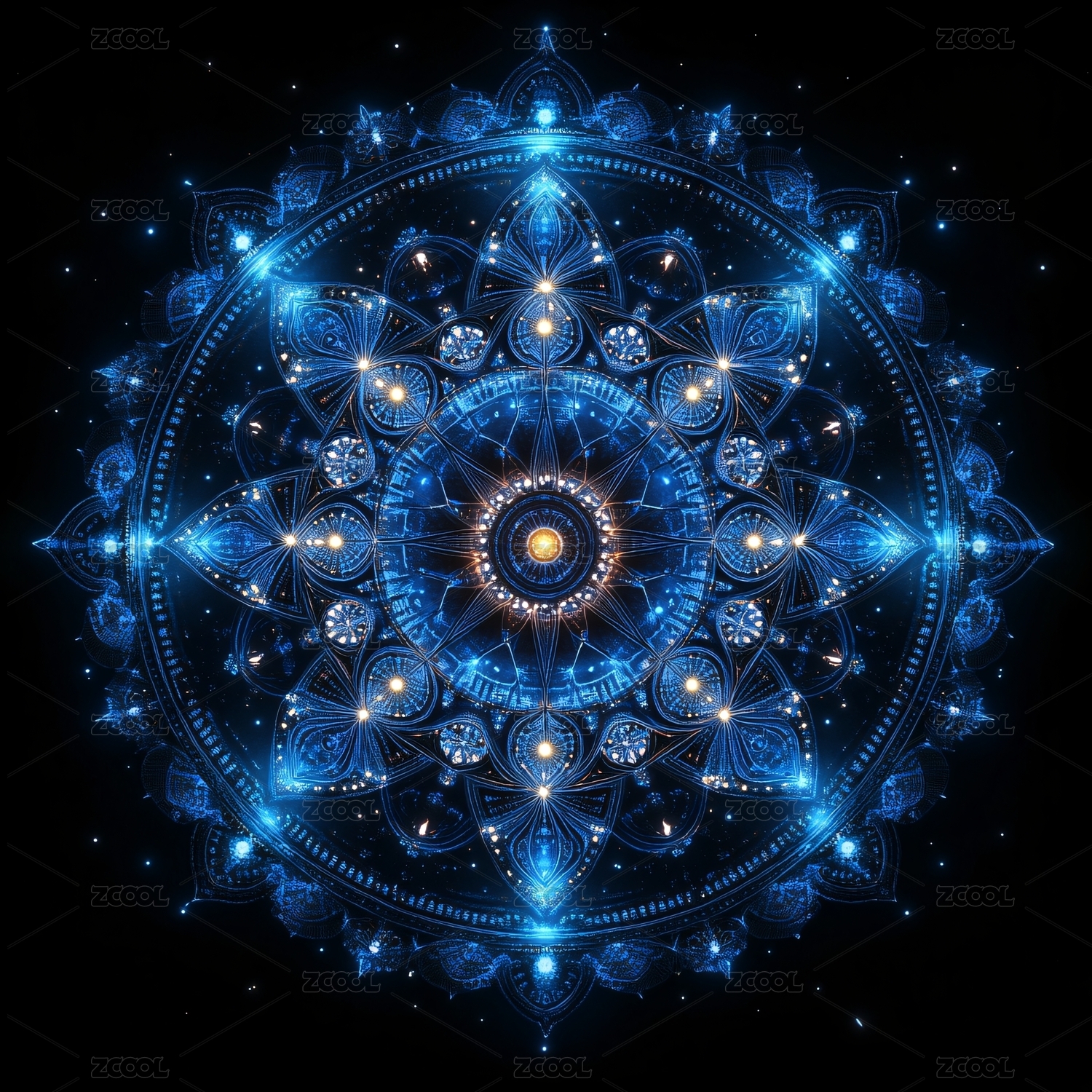 蓝色璀璨梦幻曼陀罗图案