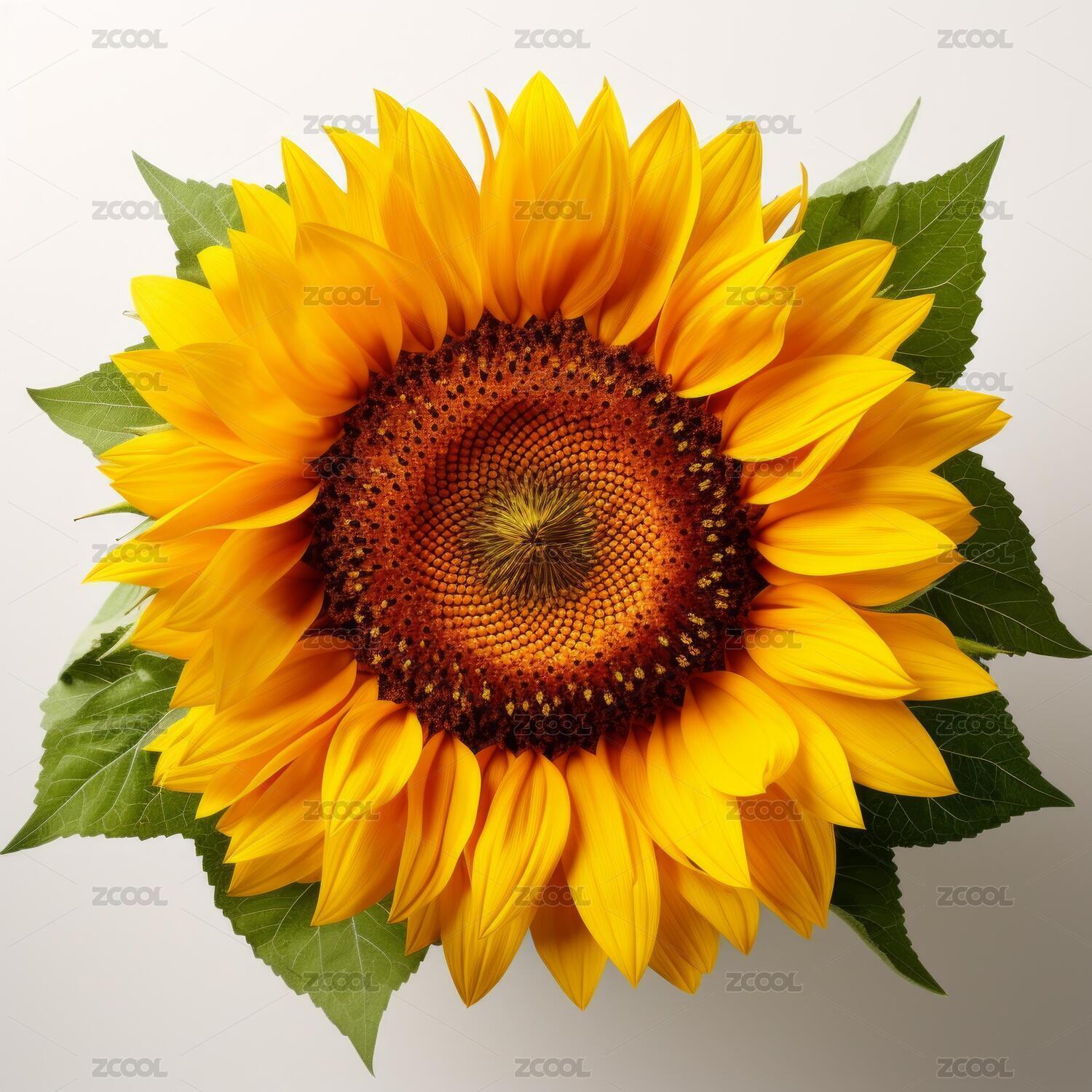 花瓶里一朵黄色向日葵上面有绿色叶子图片
