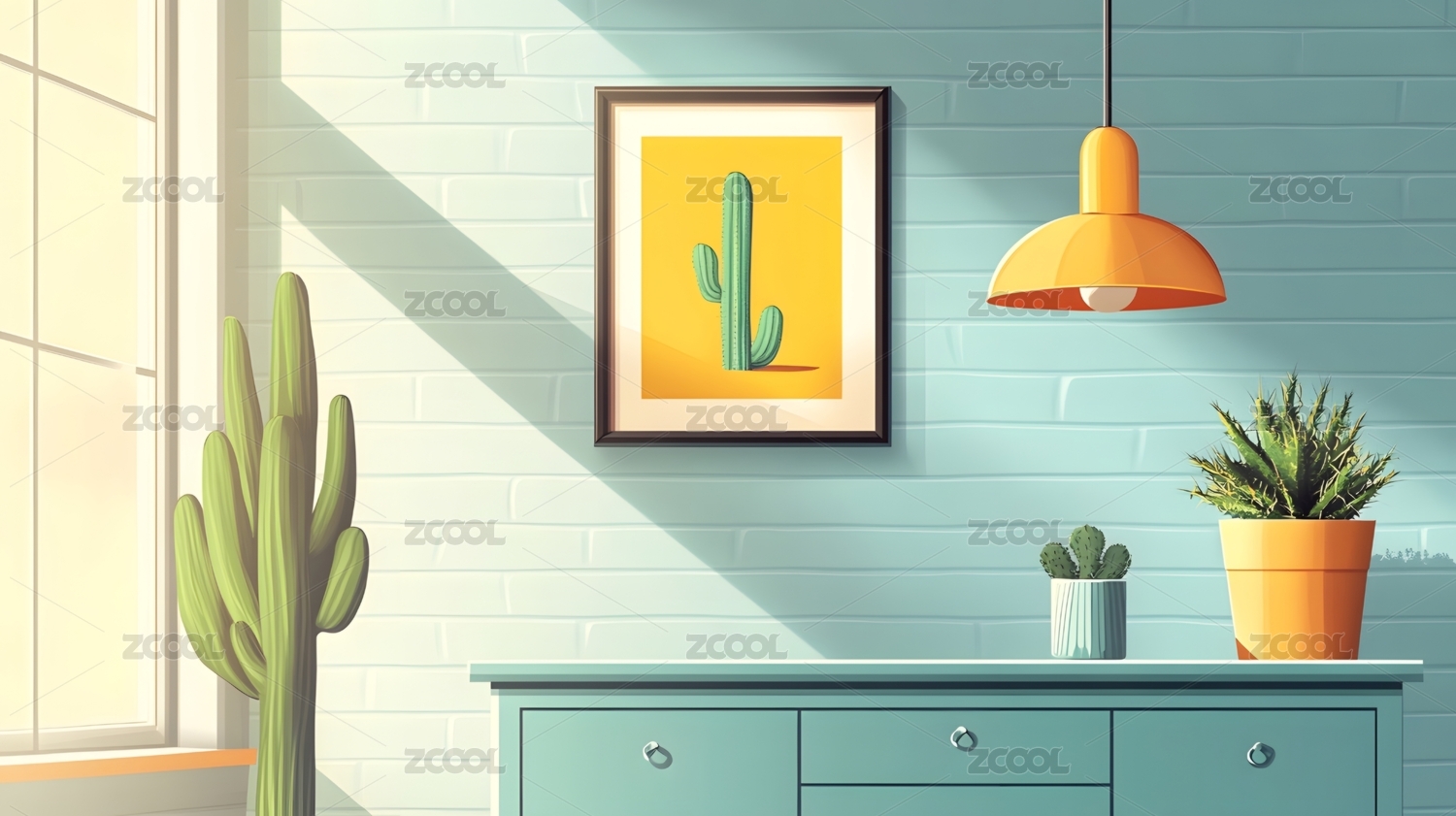简约相框书桌台灯纯色背景商业广告海报壁纸