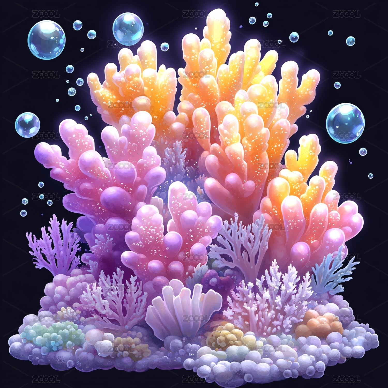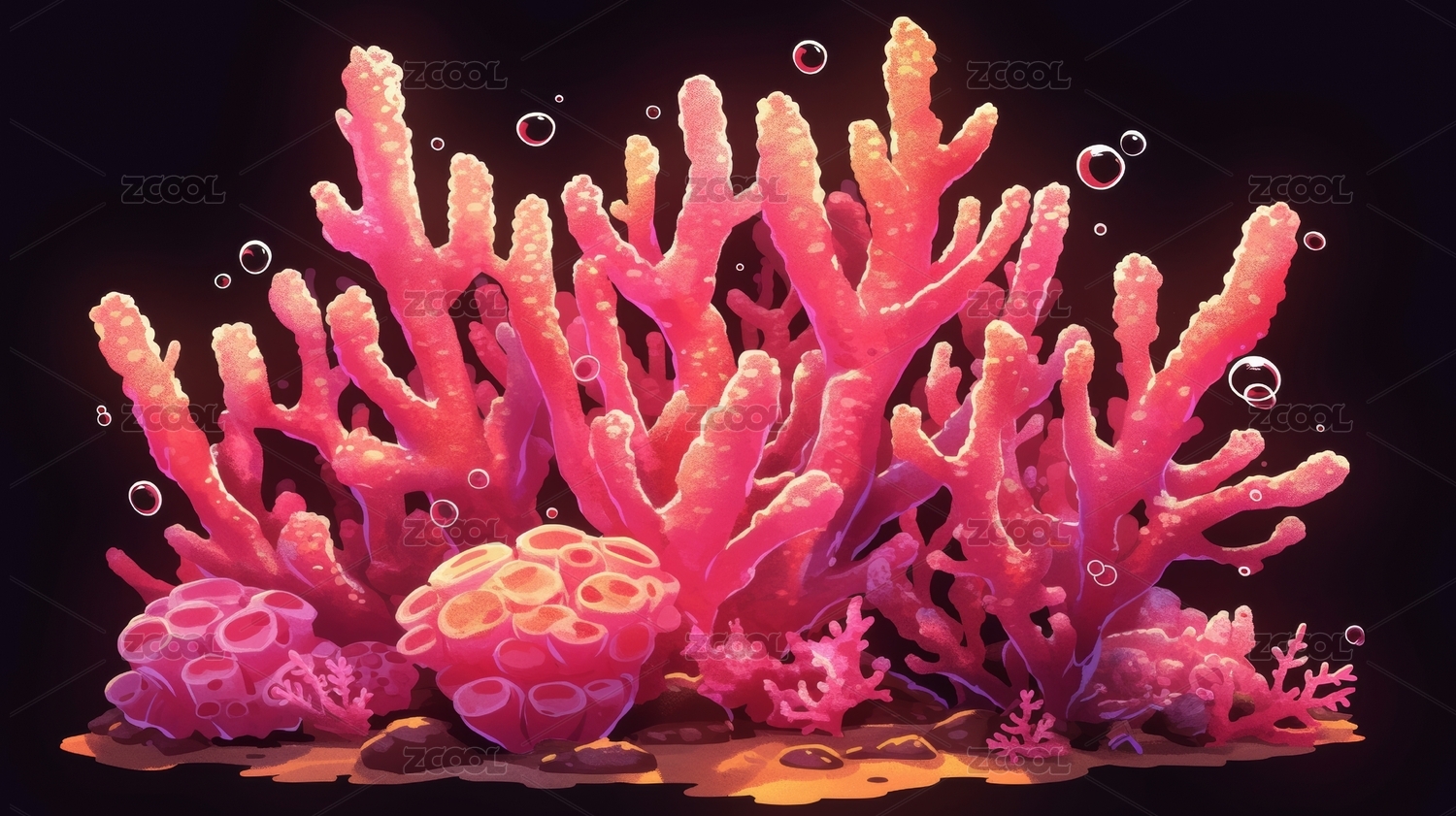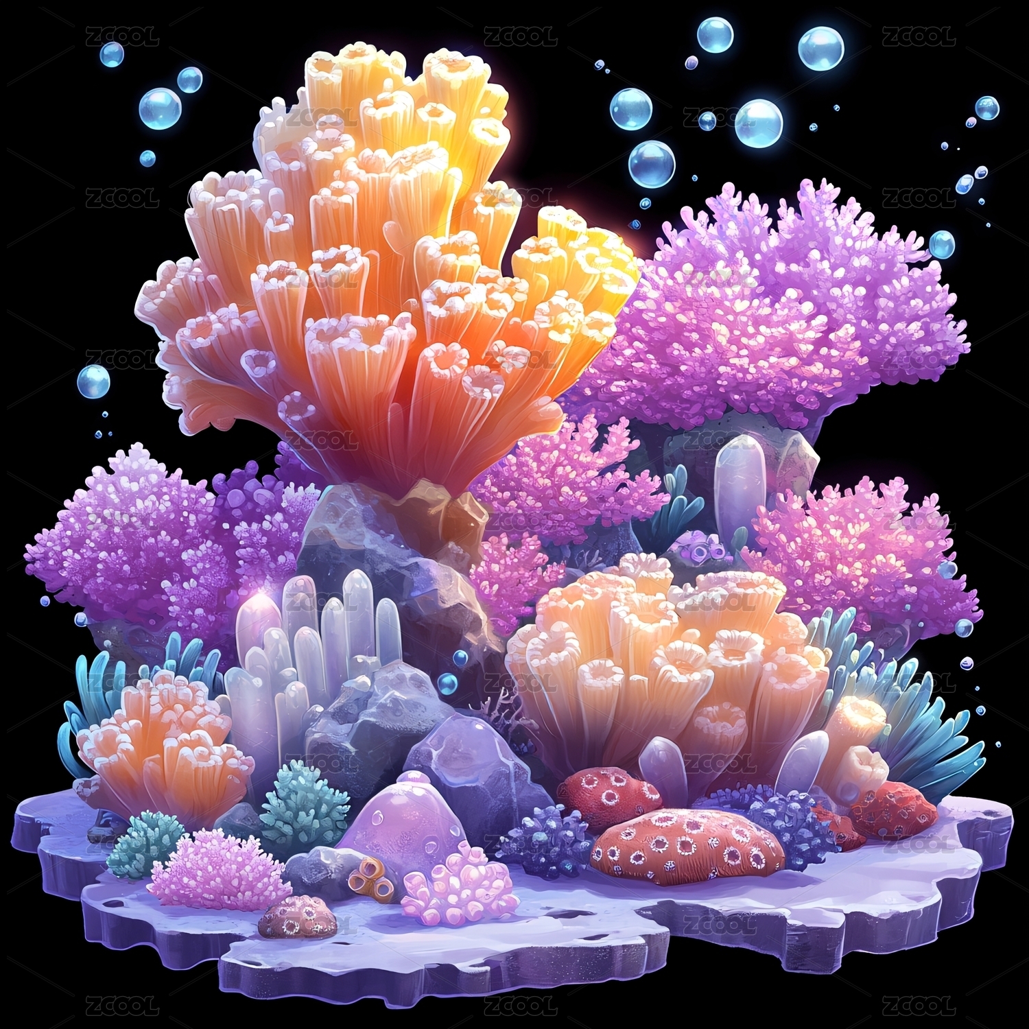 三维立体海底世界童趣珊瑚礁水草小场景背景