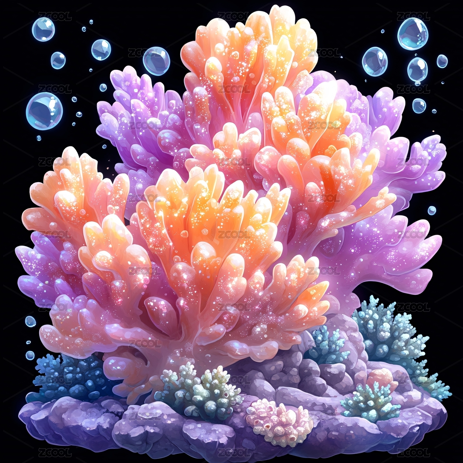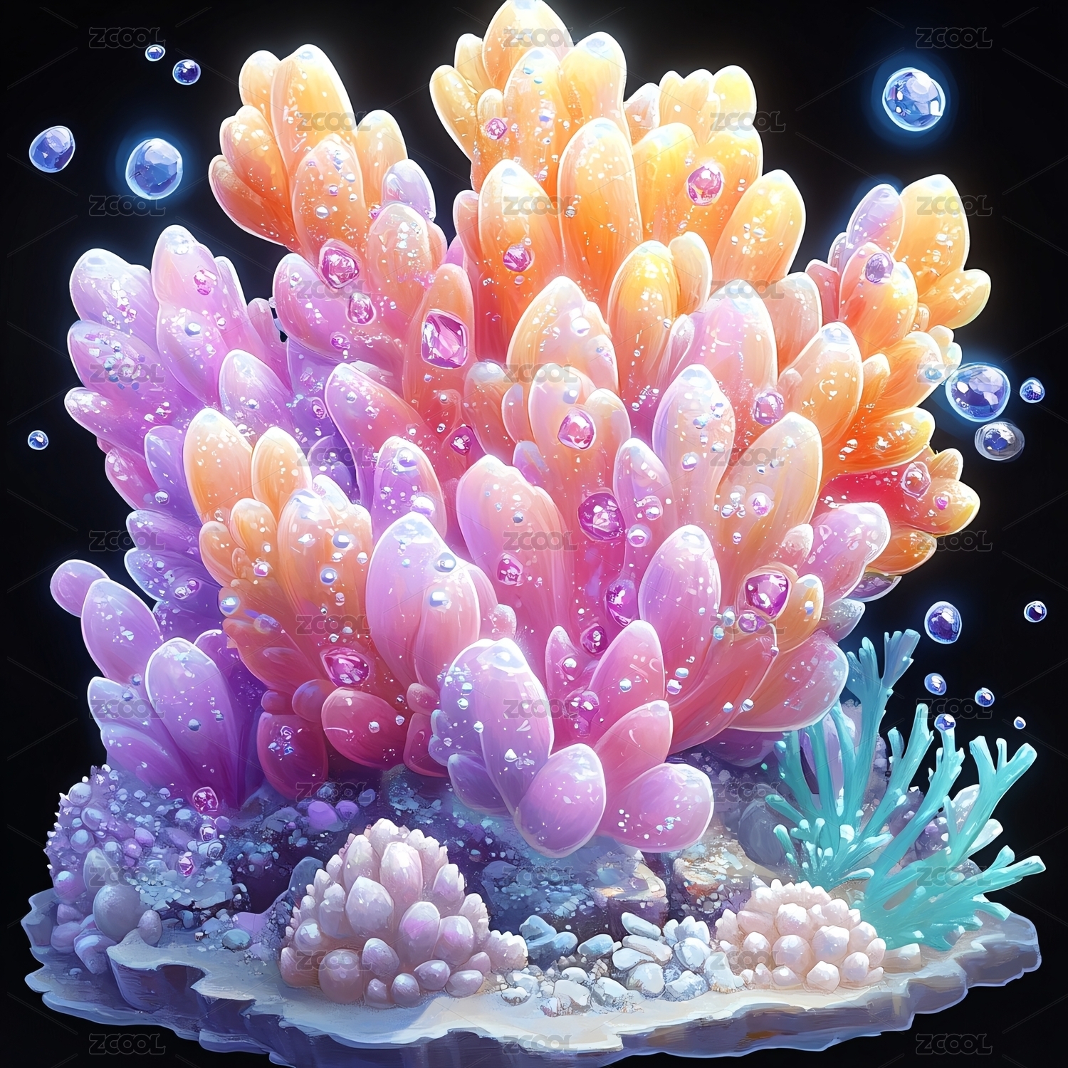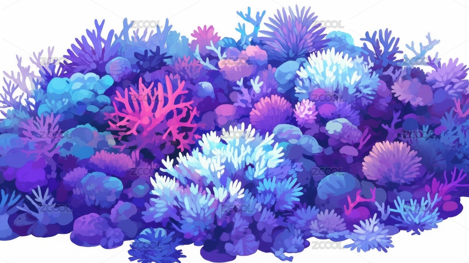 三维立体海底世界童趣珊瑚礁水草小场景背景