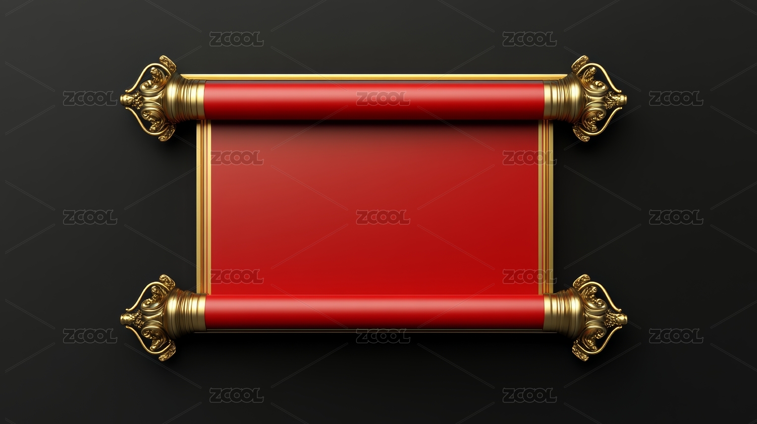红色卷轴金色边框设计