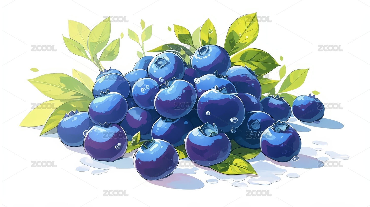 新鲜蓝莓与绿叶的插画