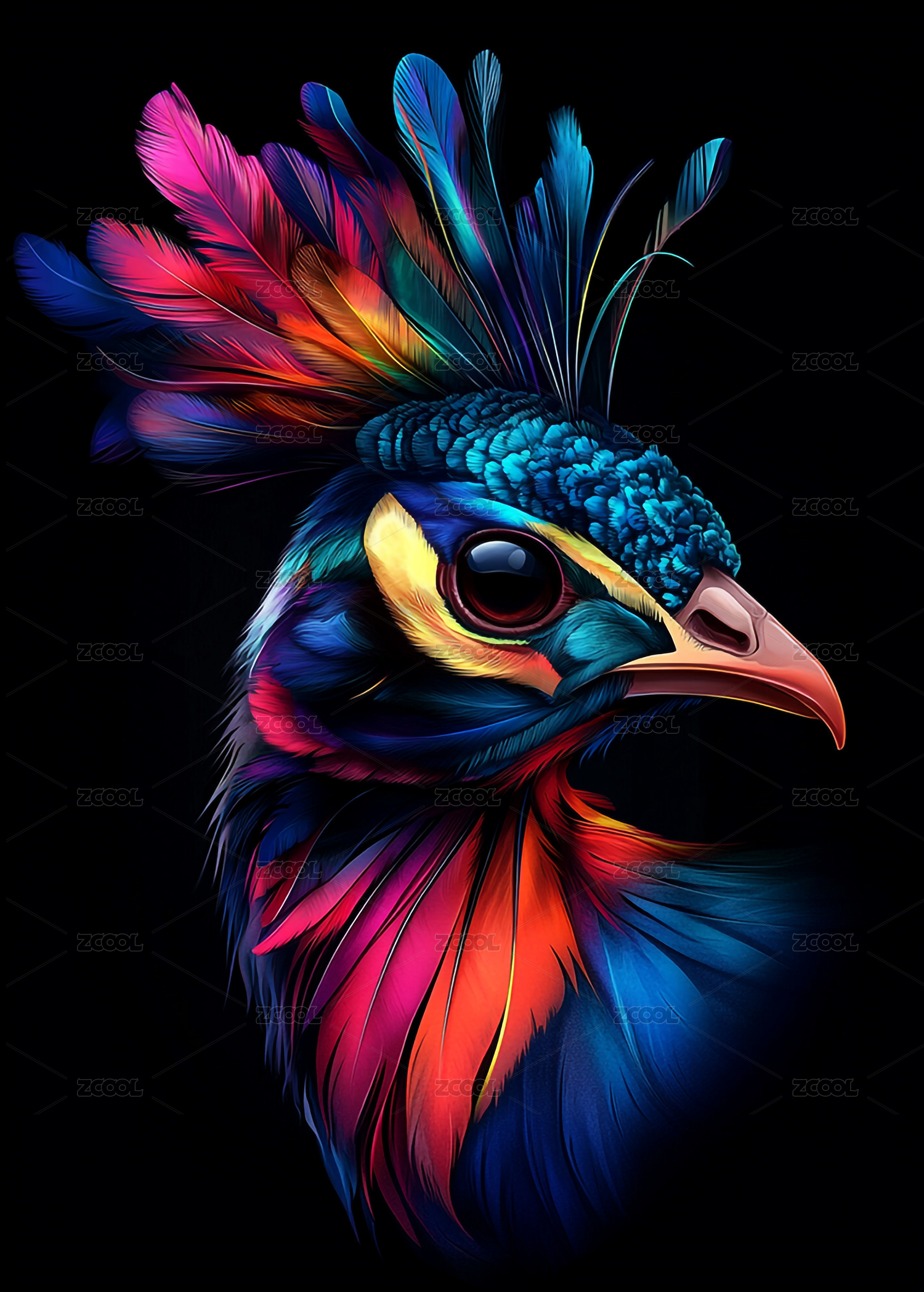 国潮动物凤凰展翅中式传统吉祥纹样色彩明亮