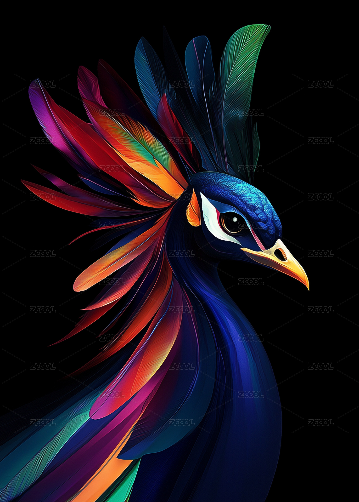 孔雀,凤凰,神兽,吉祥物,美丽,梦幻,绿色,金色,装饰,动物