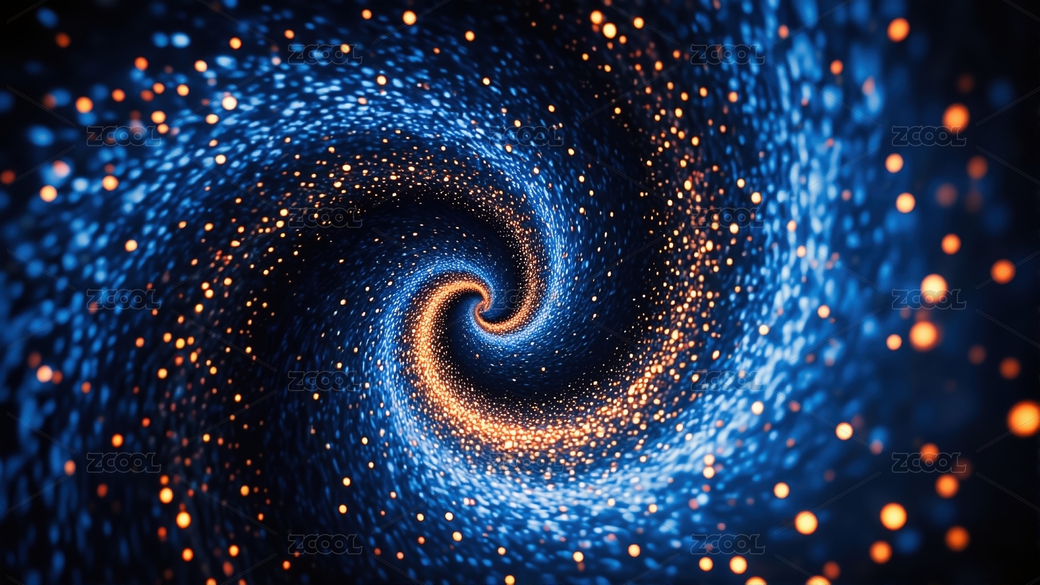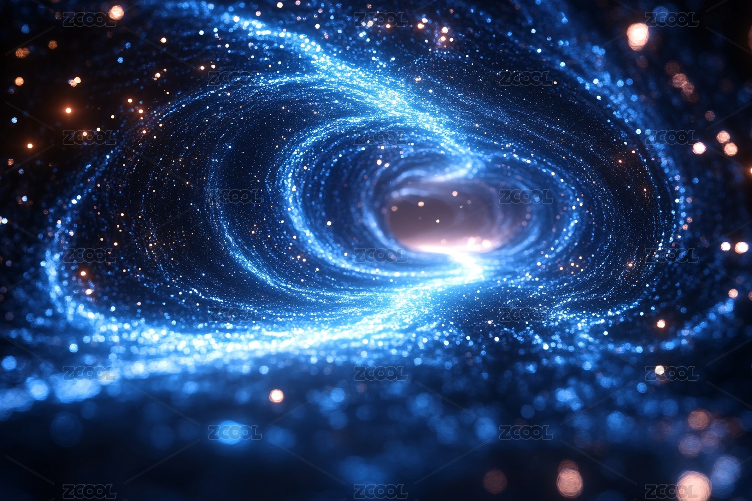 蔚蓝色的星空中有横行和黑洞的螺旋星系旋涡
