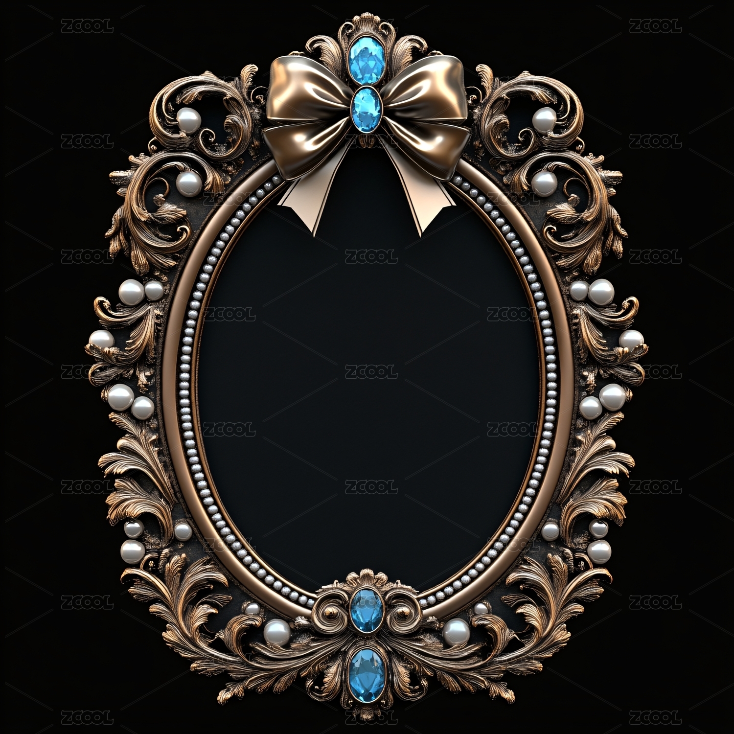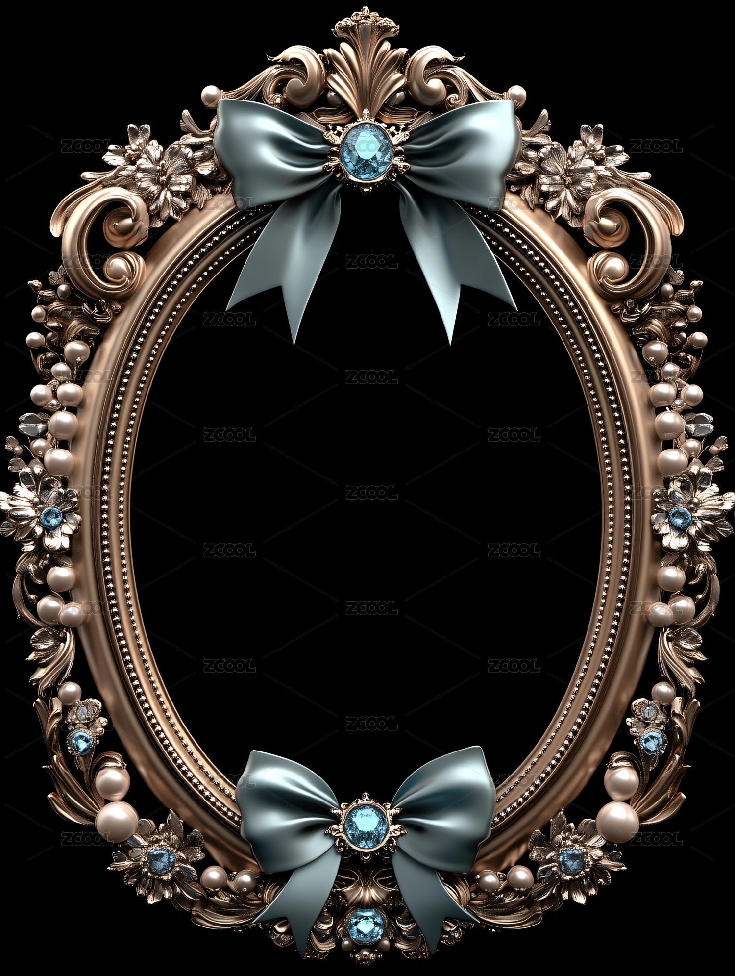 框架,金色,雕花,边框,蓝底,绸缎,质感,蝴蝶结,宝石,珍珠